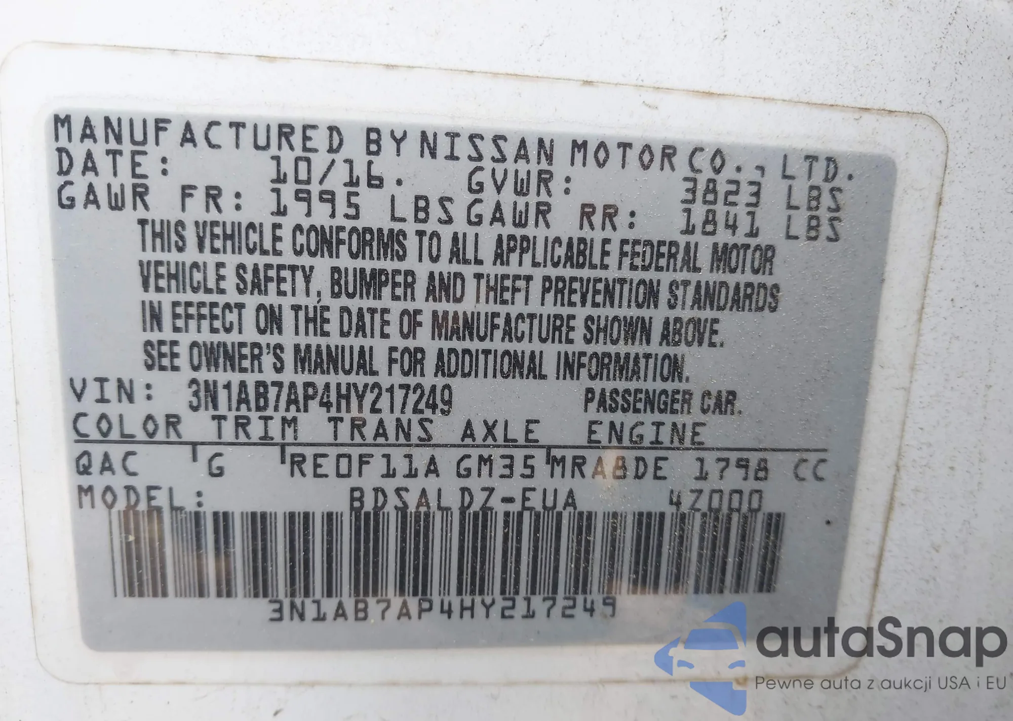 • VIN 3N1AB7AP4HY217249
