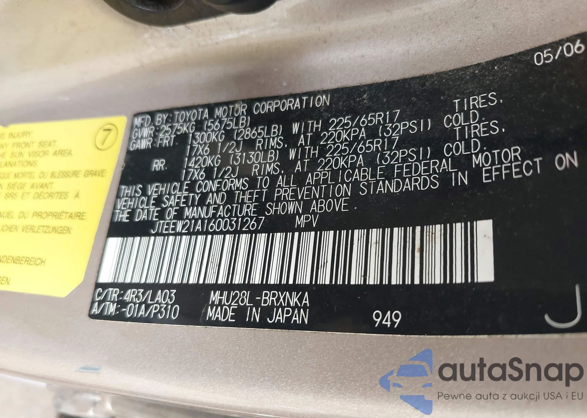 LOT: 42838580 VIN: 4T1BK46K87U044412