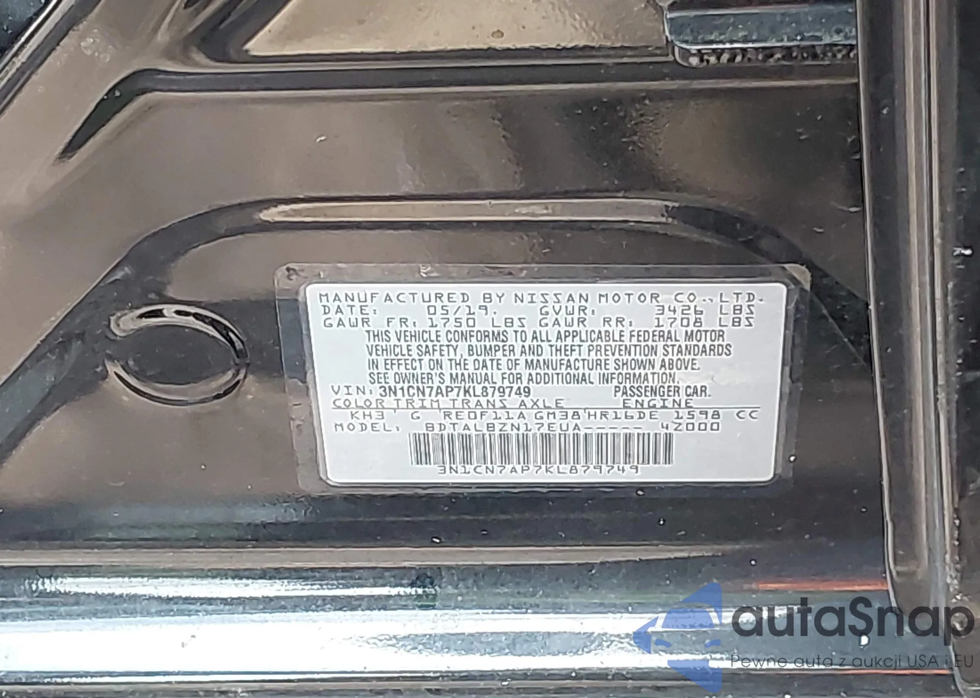 • VIN 3N1CN7AP7KL879749
