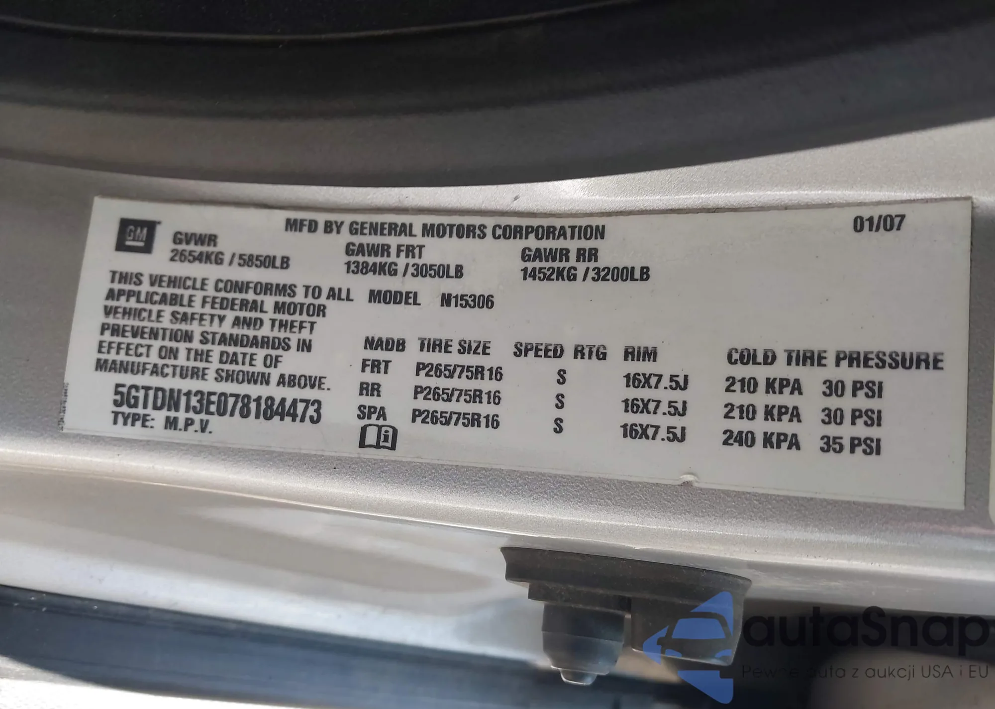 LOT: 42923501 VIN: 5GTDN13E078184473