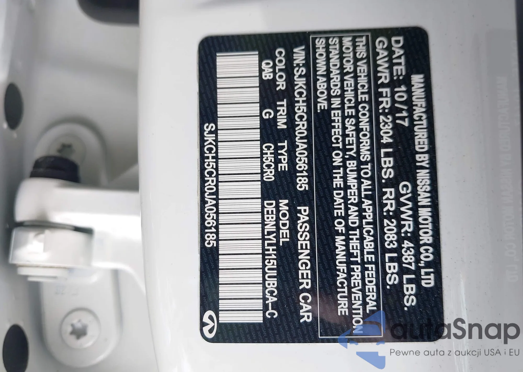 LOT: 42759077 VIN: SJKCH5CR0JA056185
