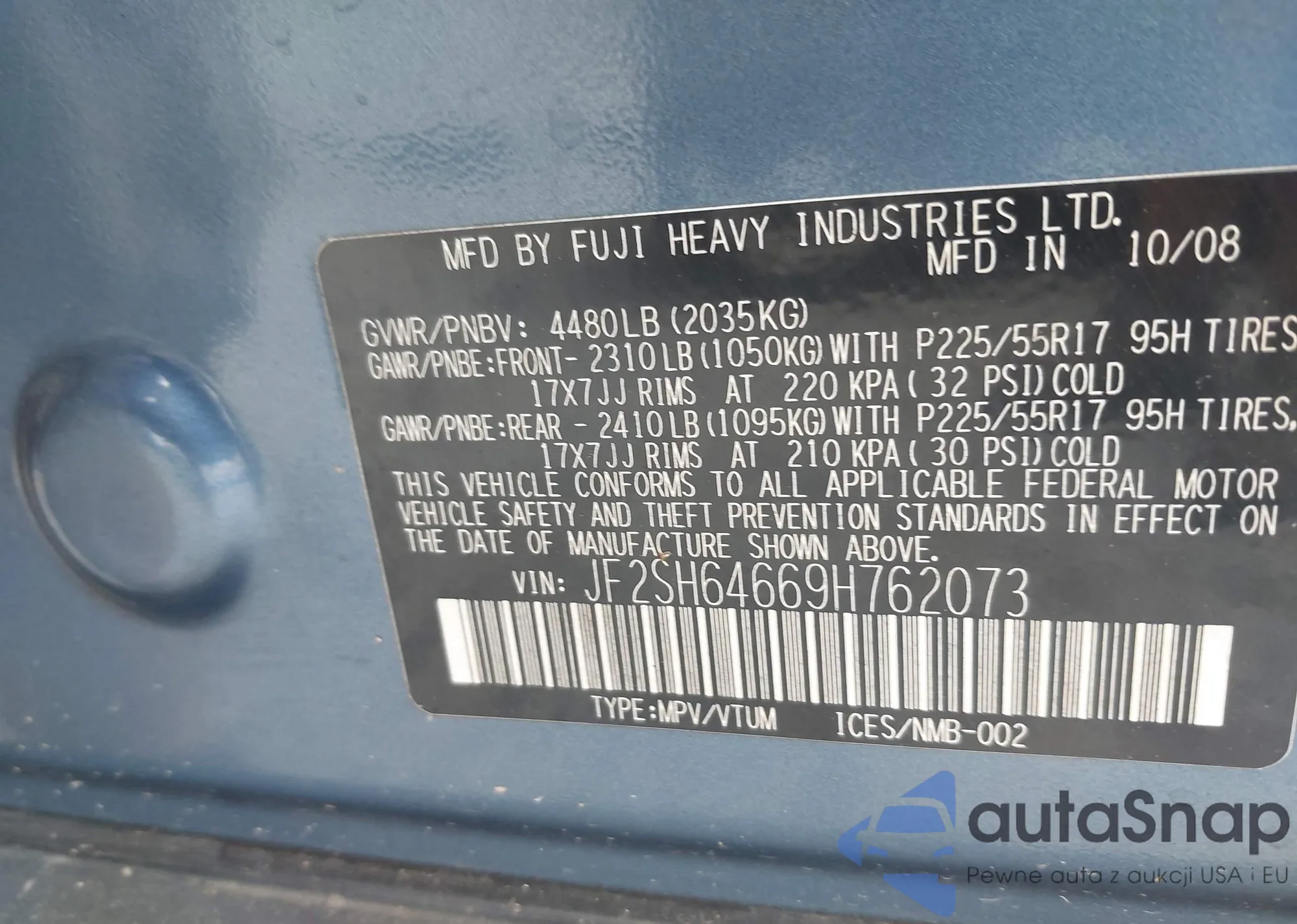 LOT: 42881745 VIN: JF2SH64669H762073