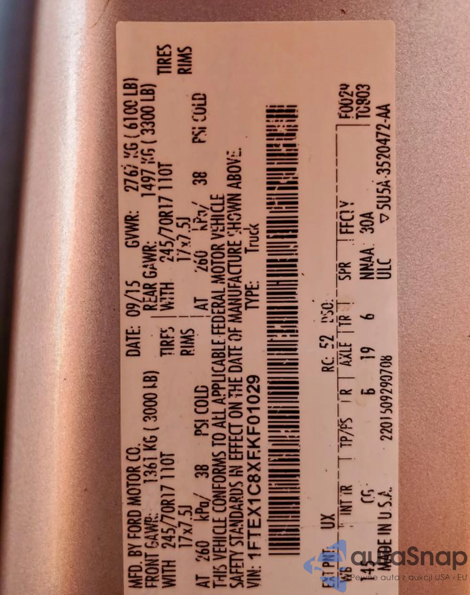 LOT: 67682505 VIN: WA1DKAFP9BA032913