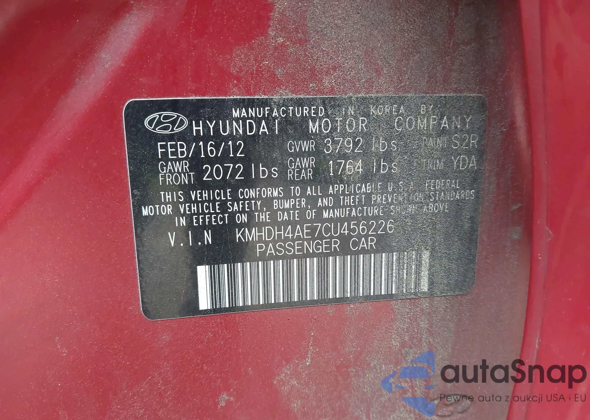 LOT: 42678113 VIN: KMHDH4AE7CU456226