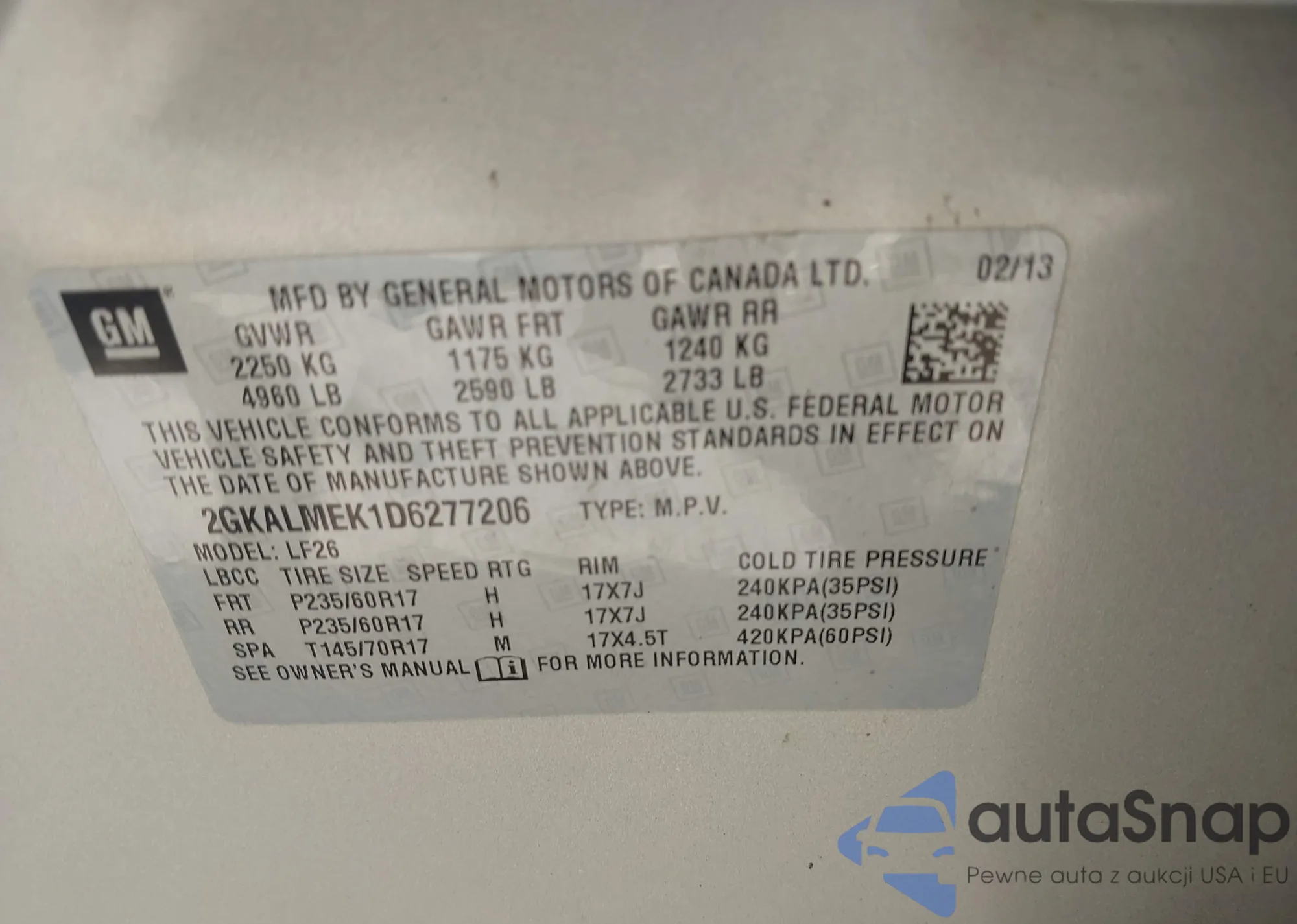 LOT: 42954420 VIN: 2GKFLXEKXE6140404