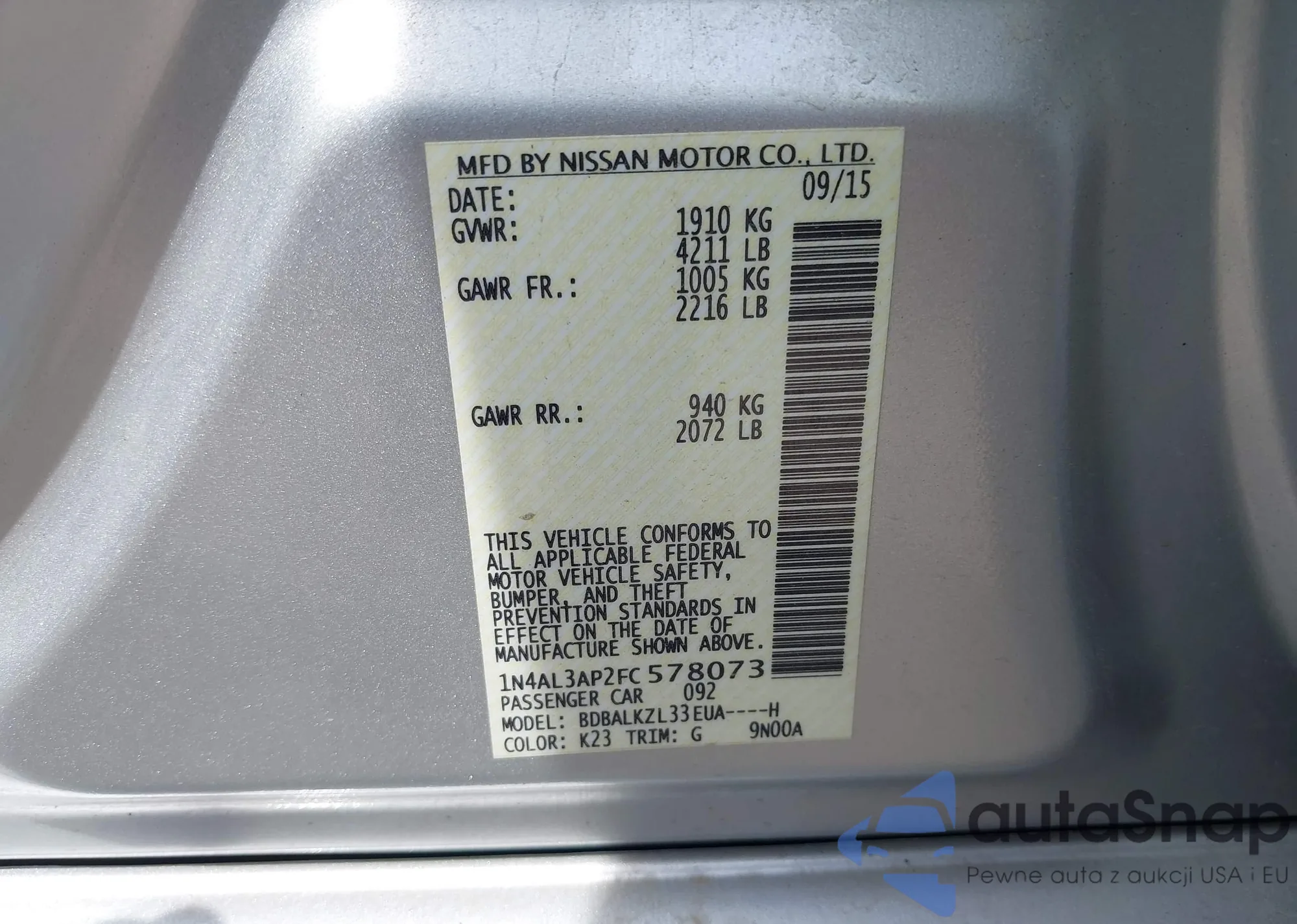 • VIN 1N4AL3AP2FC578073