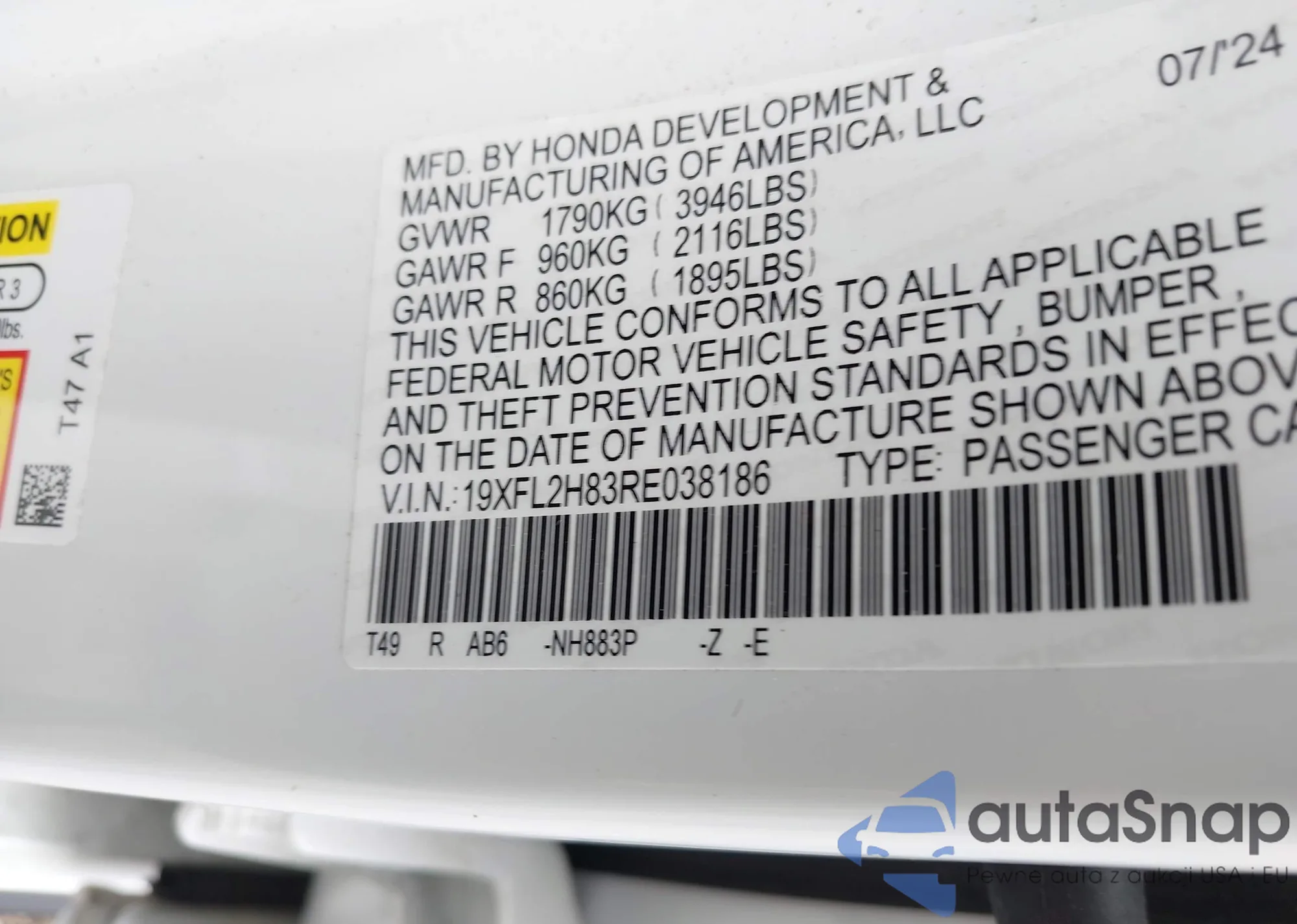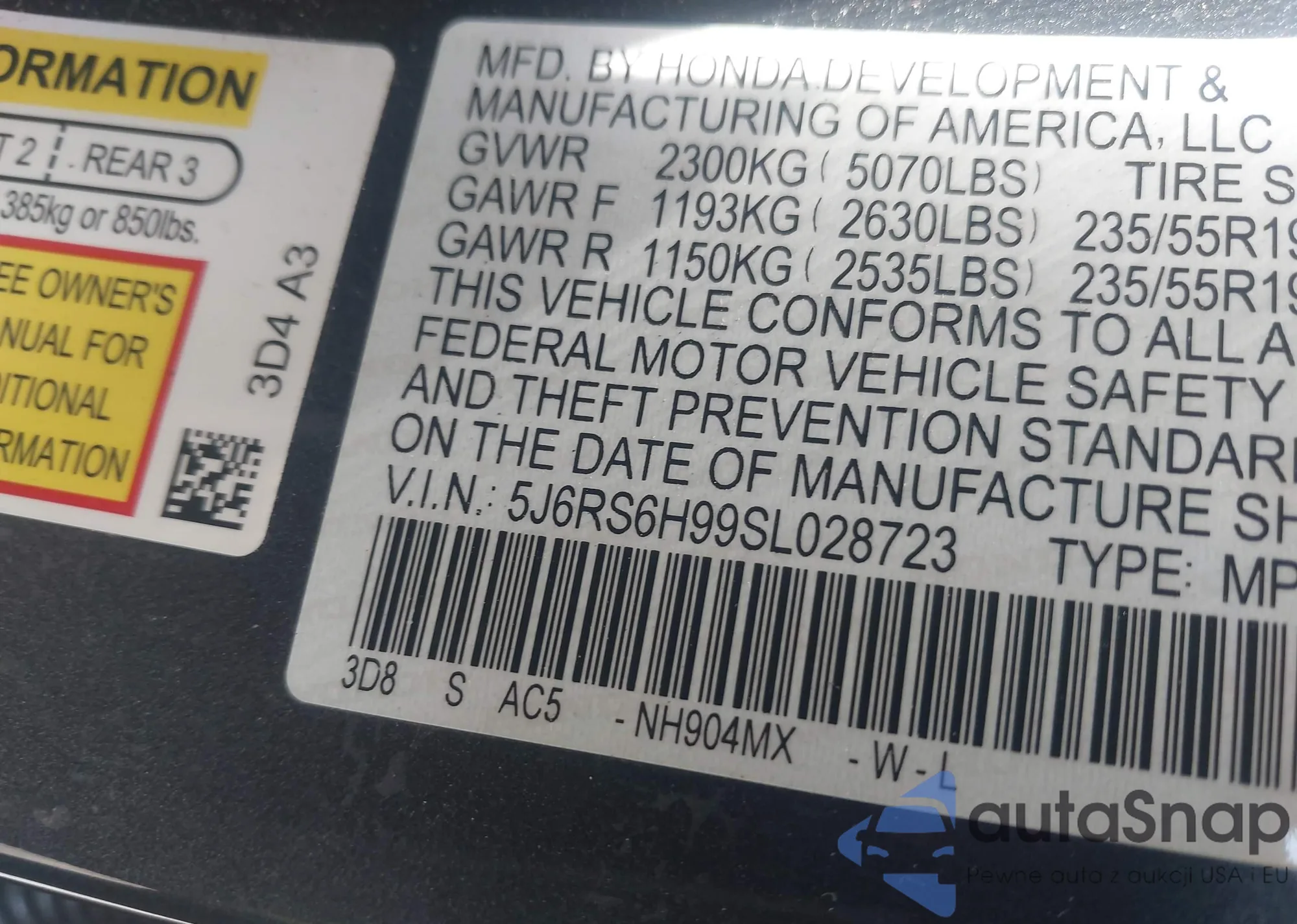 • VIN 5J6RS6H99SL028723