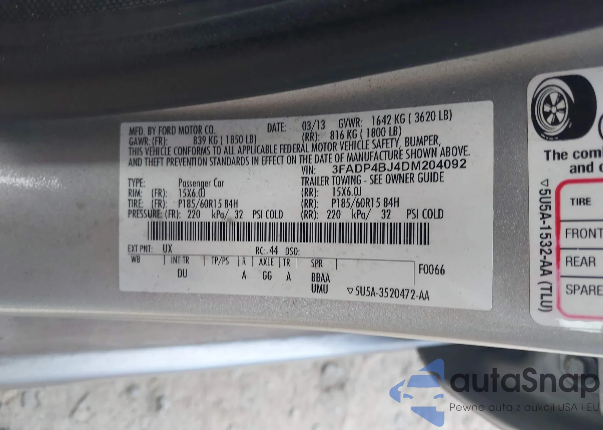 • VIN 3FADP4BJ4DM204092