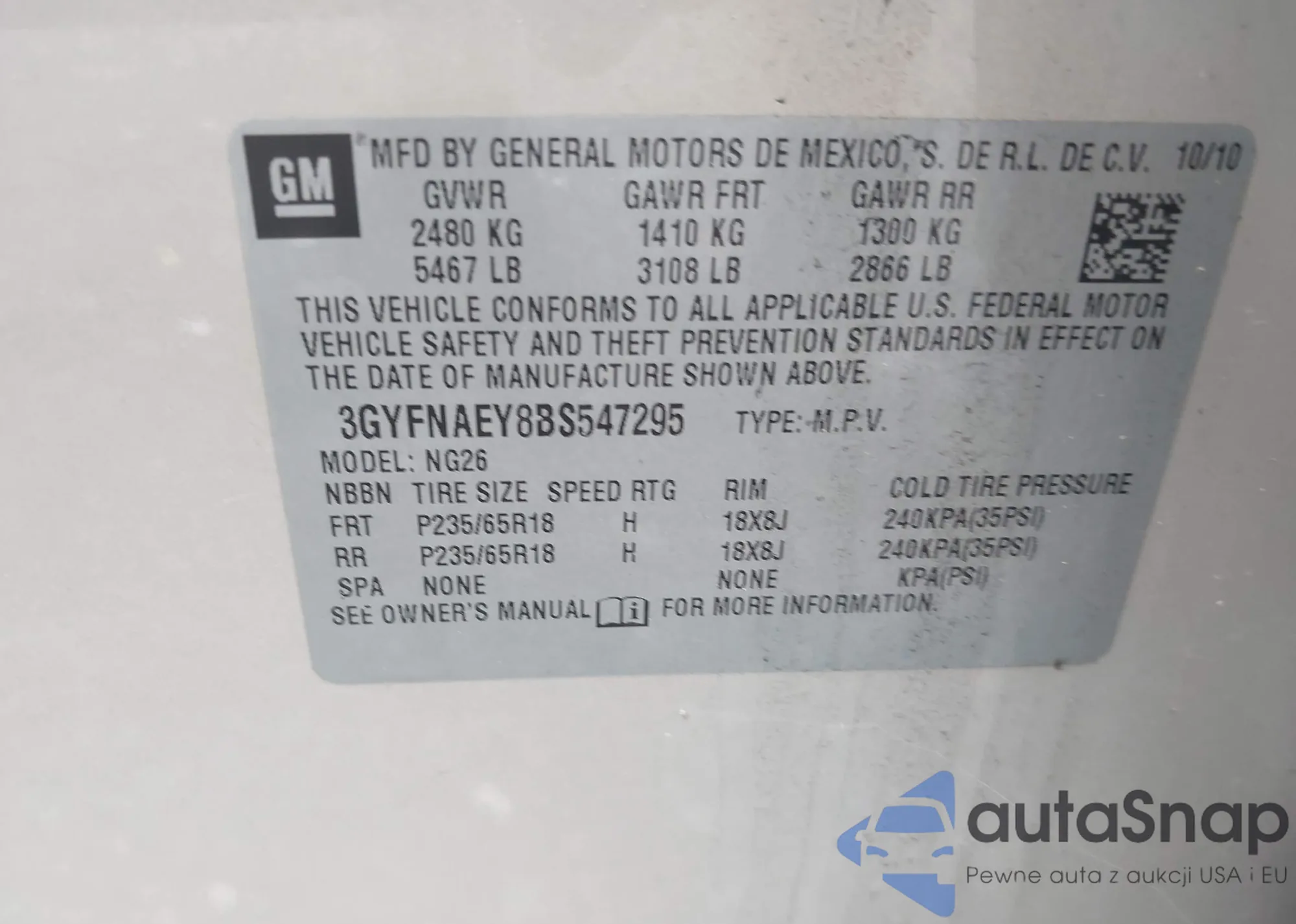 • VIN KL7CJRSB5FB188473