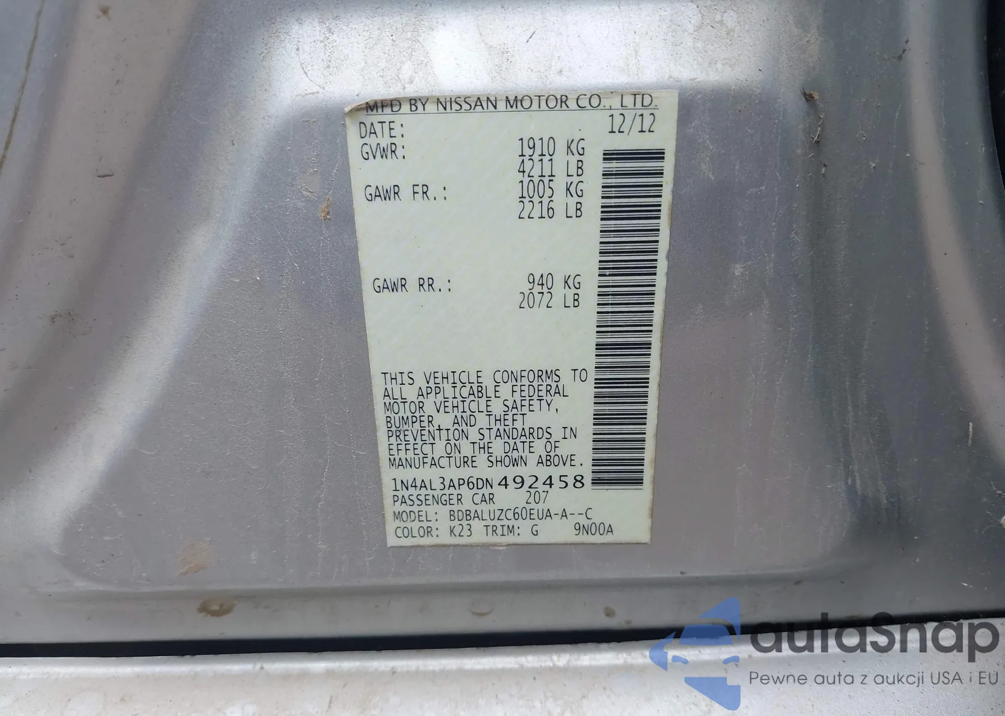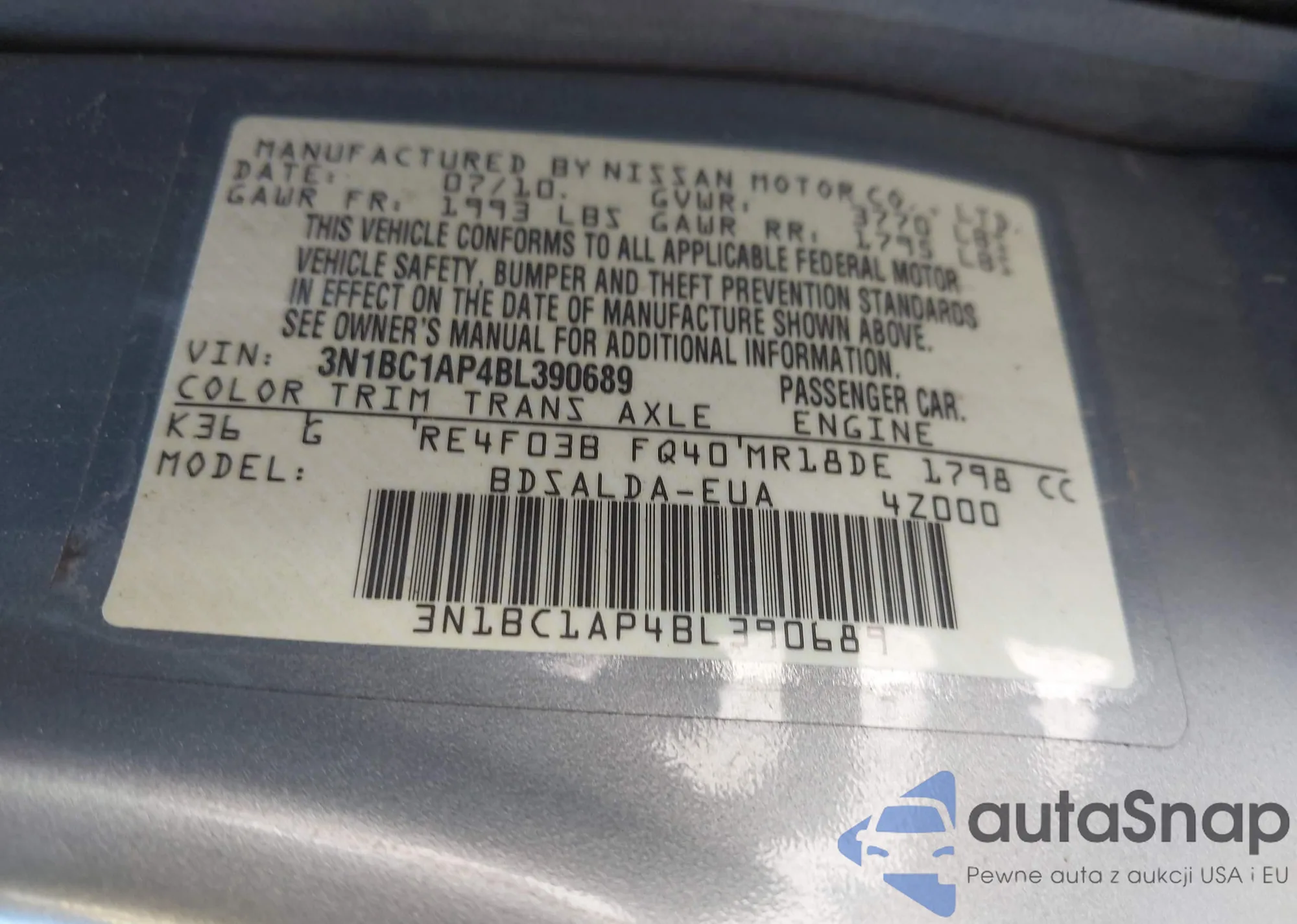 • VIN 3N1BC1AP4BL390689
