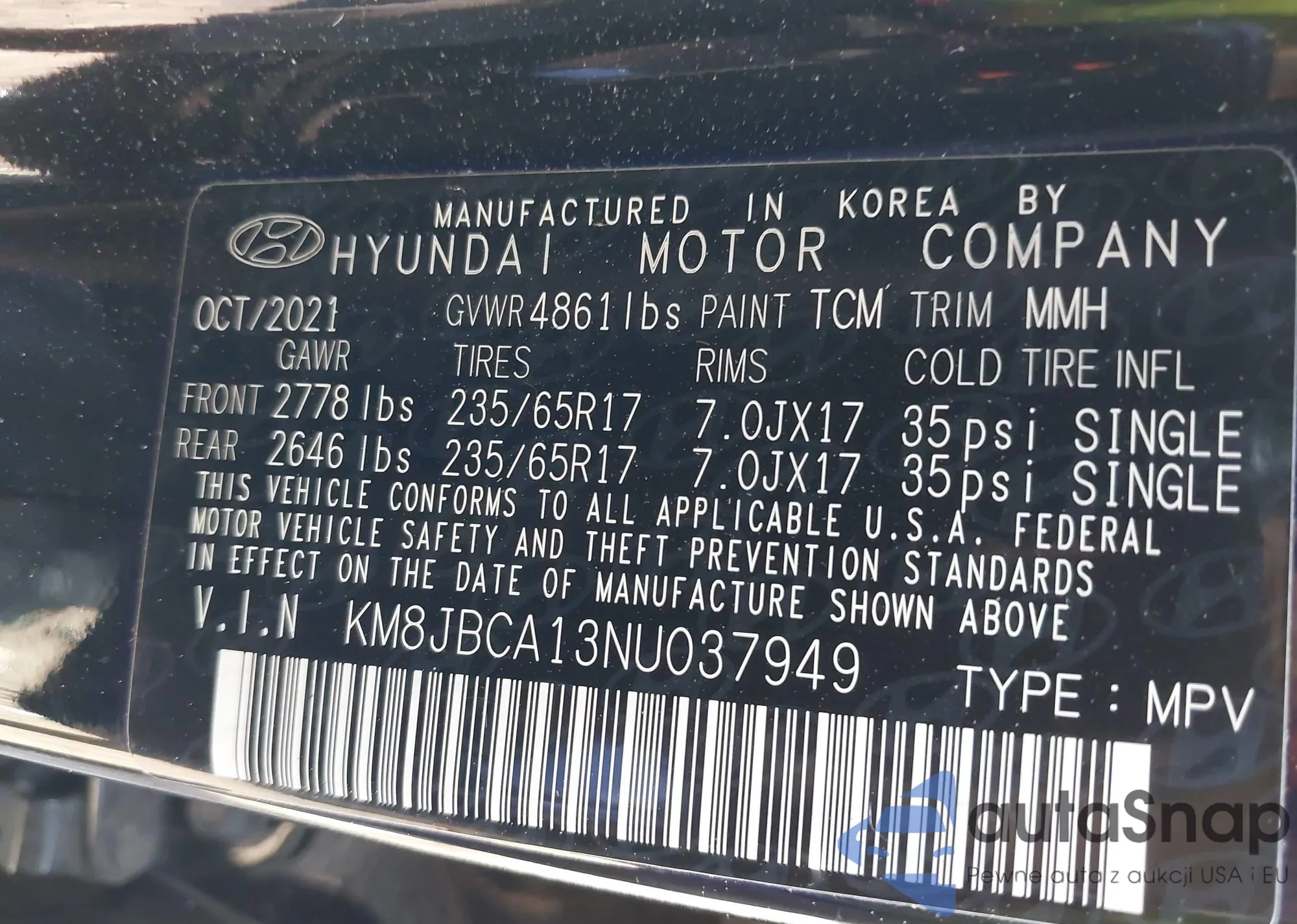 LOT: 42788893 VIN: KM8JBCA13NU037949