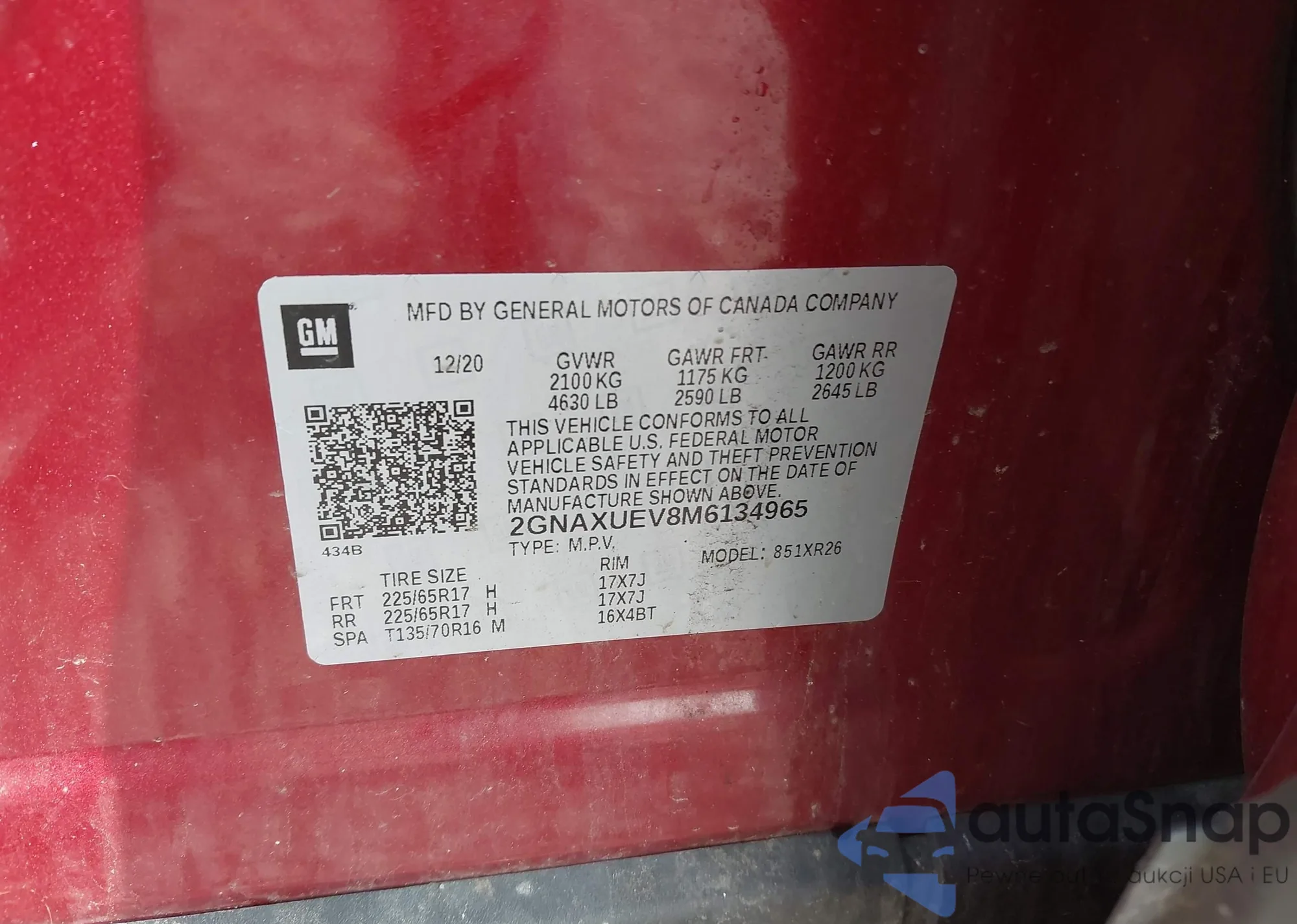 • VIN 2GNAXUEV8M6134965