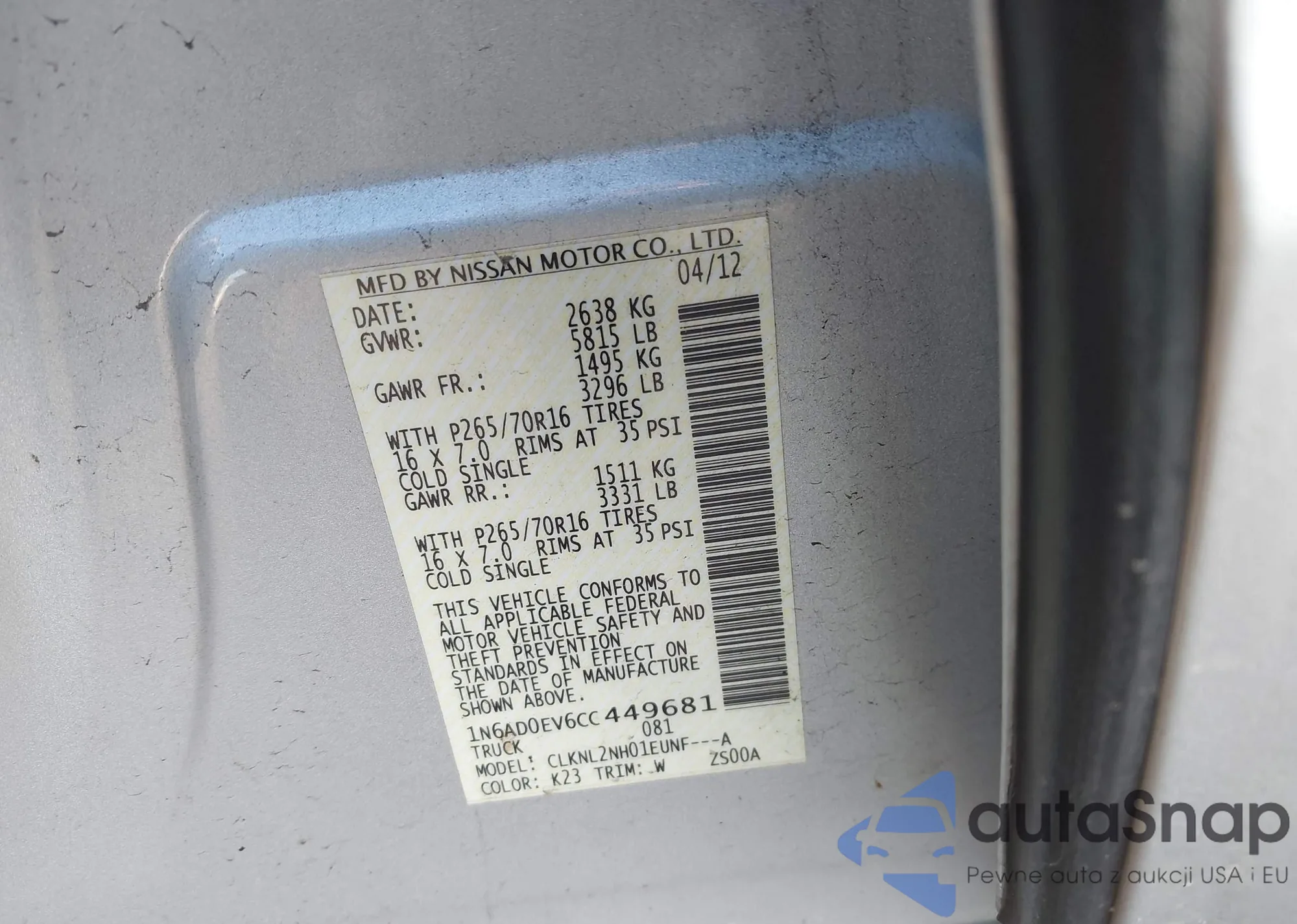 • VIN 1N6AD0EV6CC449681