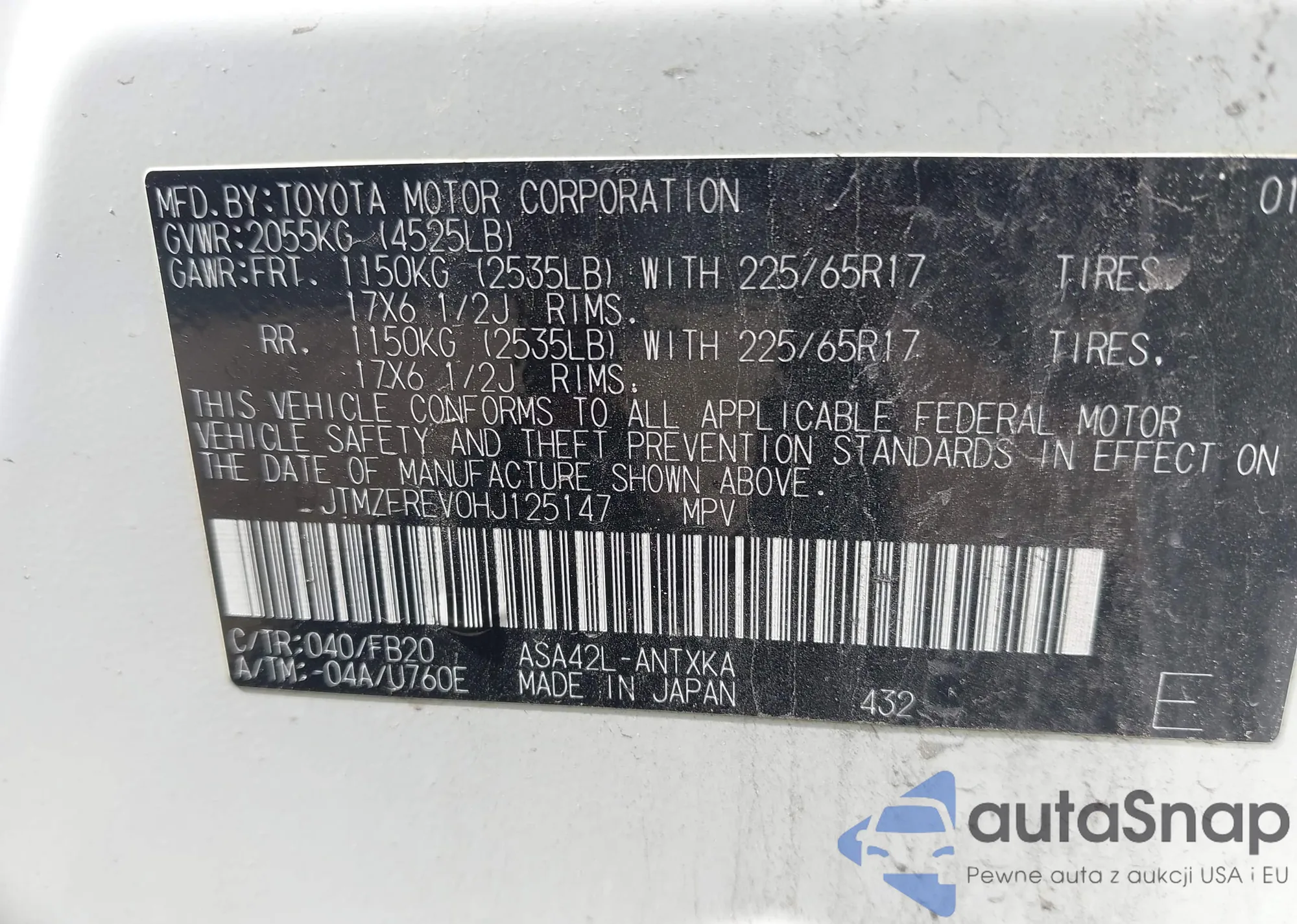 LOT: 42835853 VIN: ML32F3FJ3HH004665