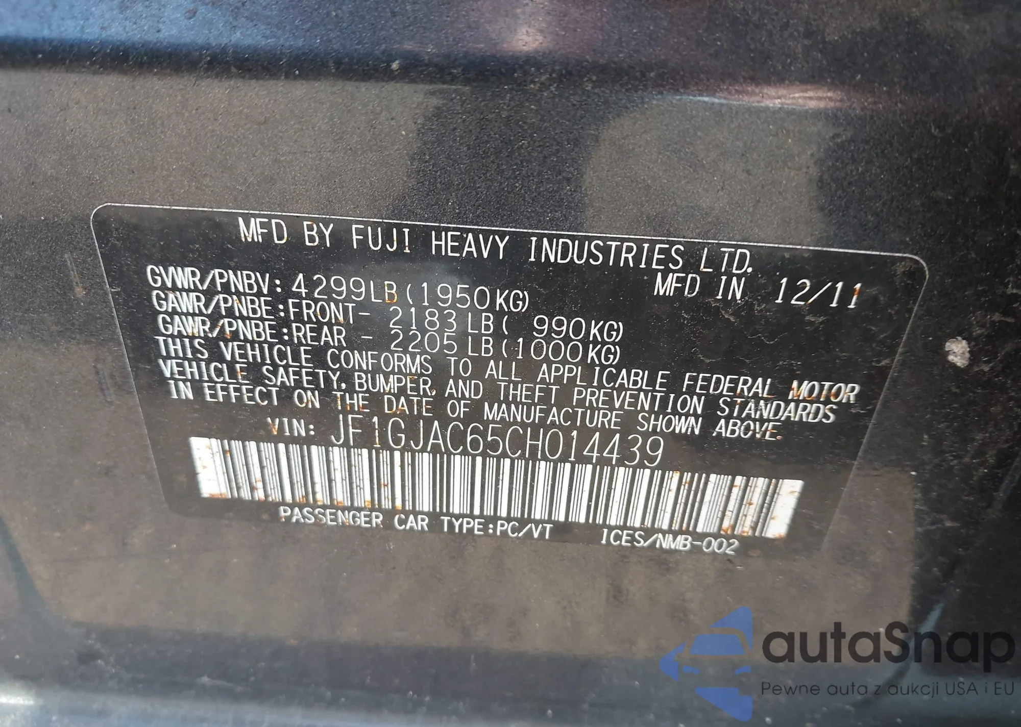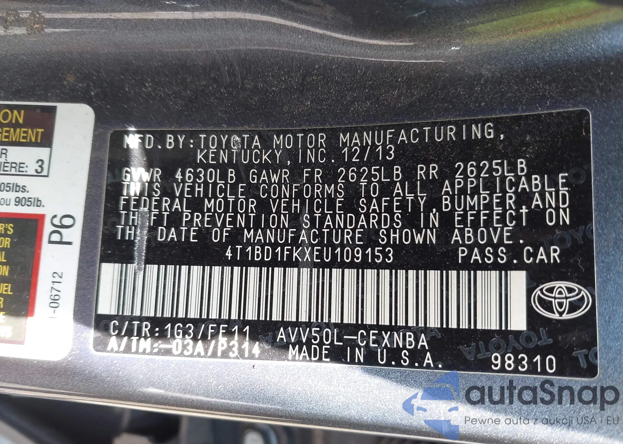 • VIN 4T1BD1FKXEU109153