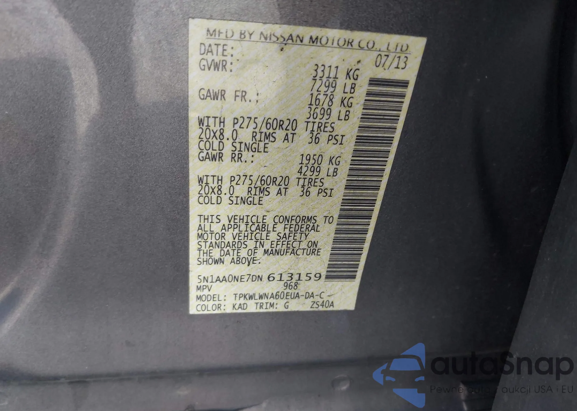 • VIN 5N1AA0NE7DN613159
