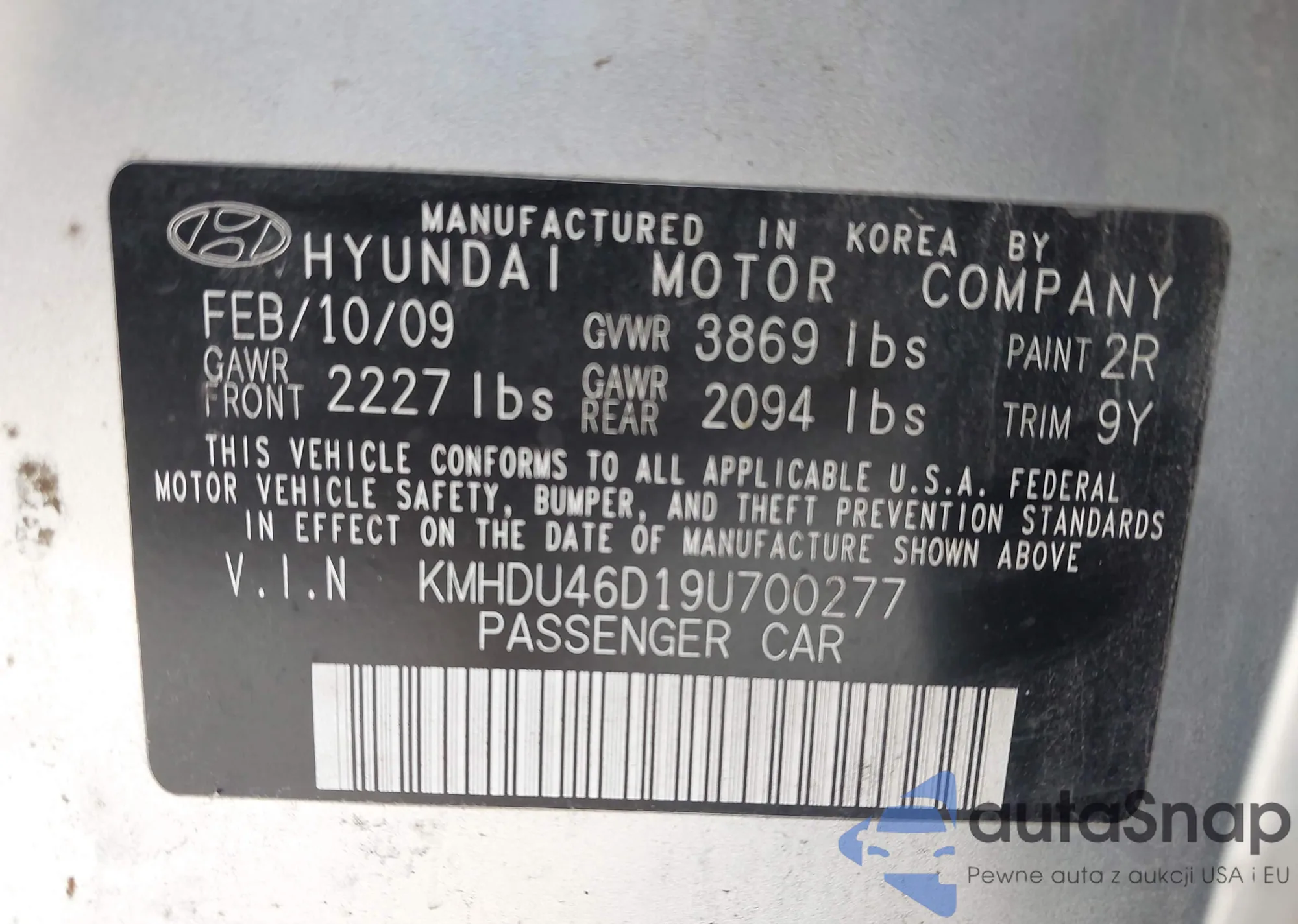LOT: 42813890 VIN: 5NMSH13E58H204769