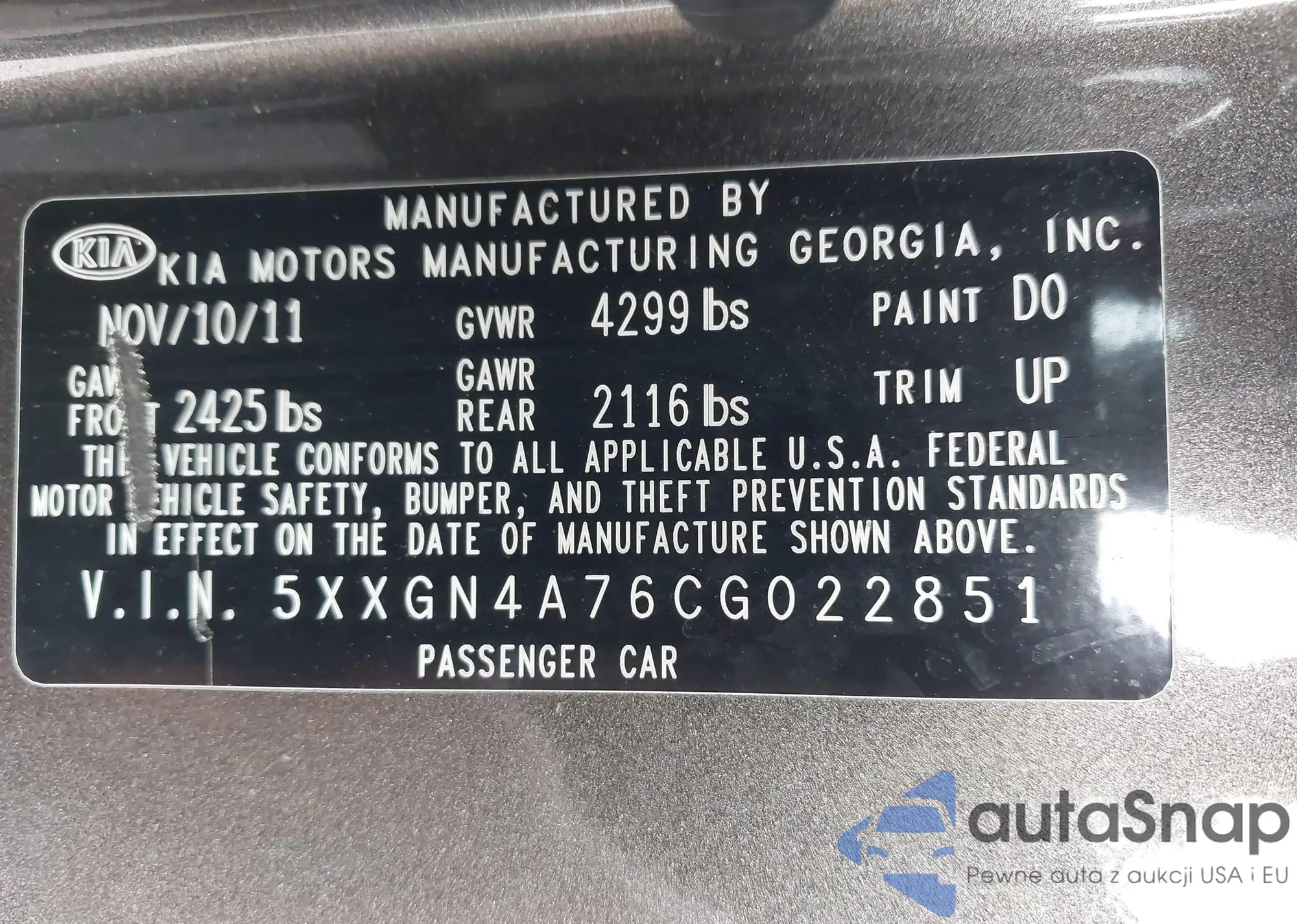 • VIN 5XXGN4A76CG022851