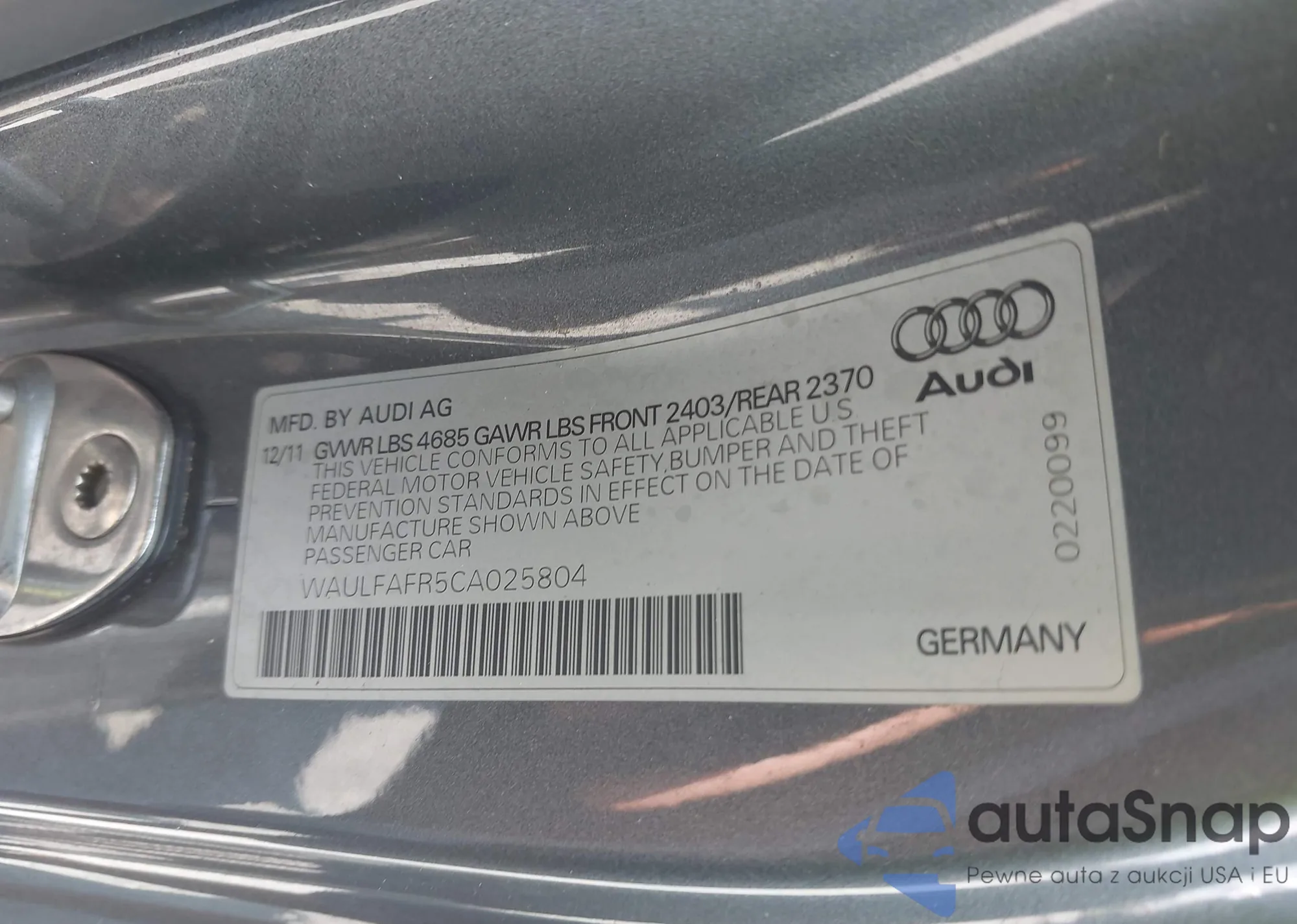 • VIN WAULFAFR5CA025804