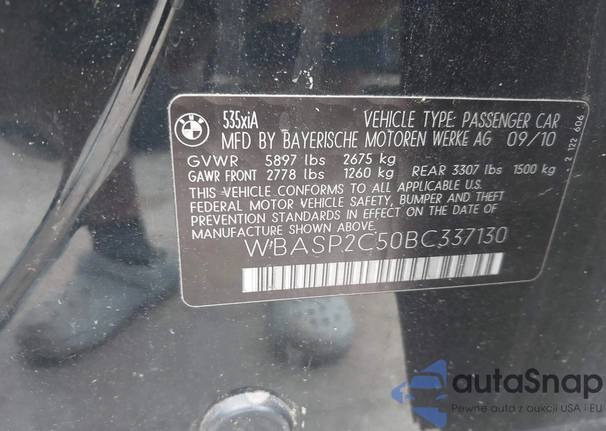 • VIN WBASP2C50BC337130