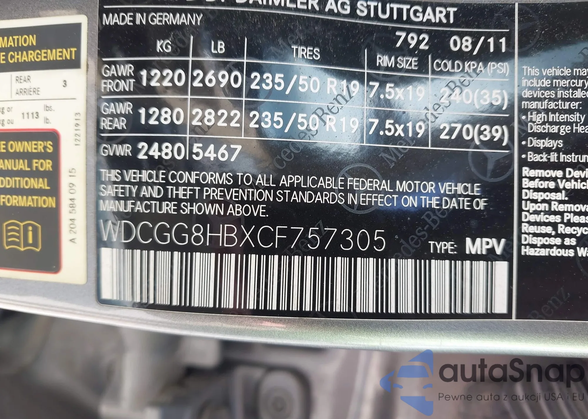 • VIN WDCGG8HBXCF757305