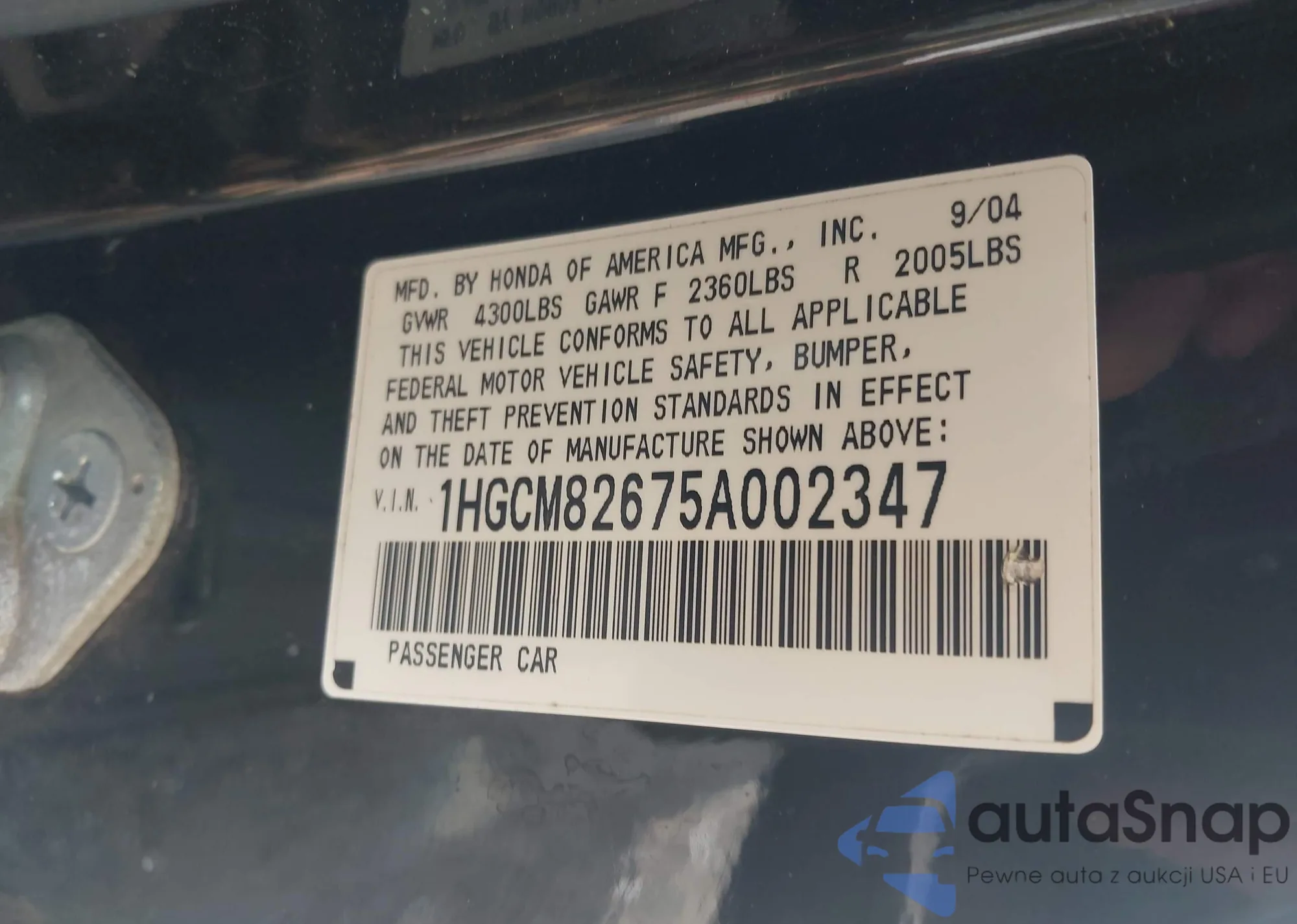 LOT: 42549835 VIN: 1HGCM82675A002347