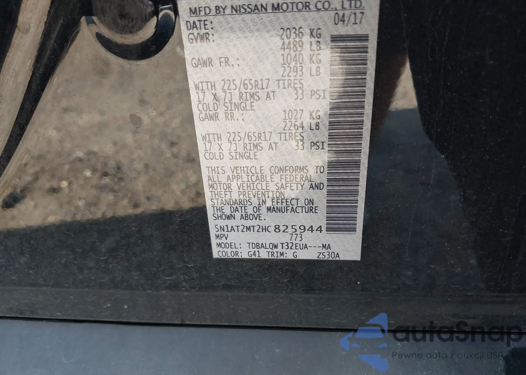LOT: 42764588 VIN: 5N1AT2MT2HC825944