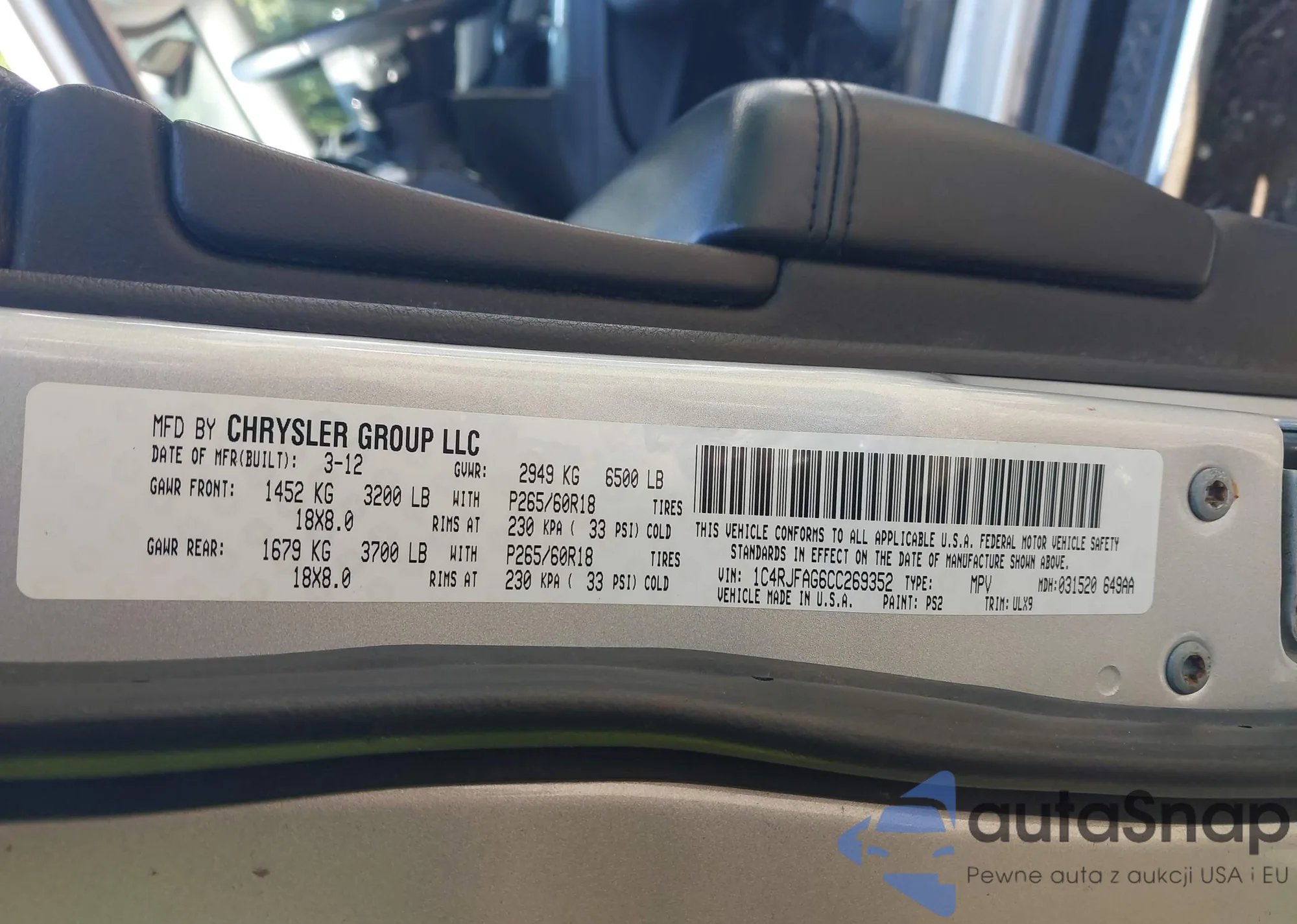 LOT: 42156466 VIN: 1C4PJMDX3KD456225