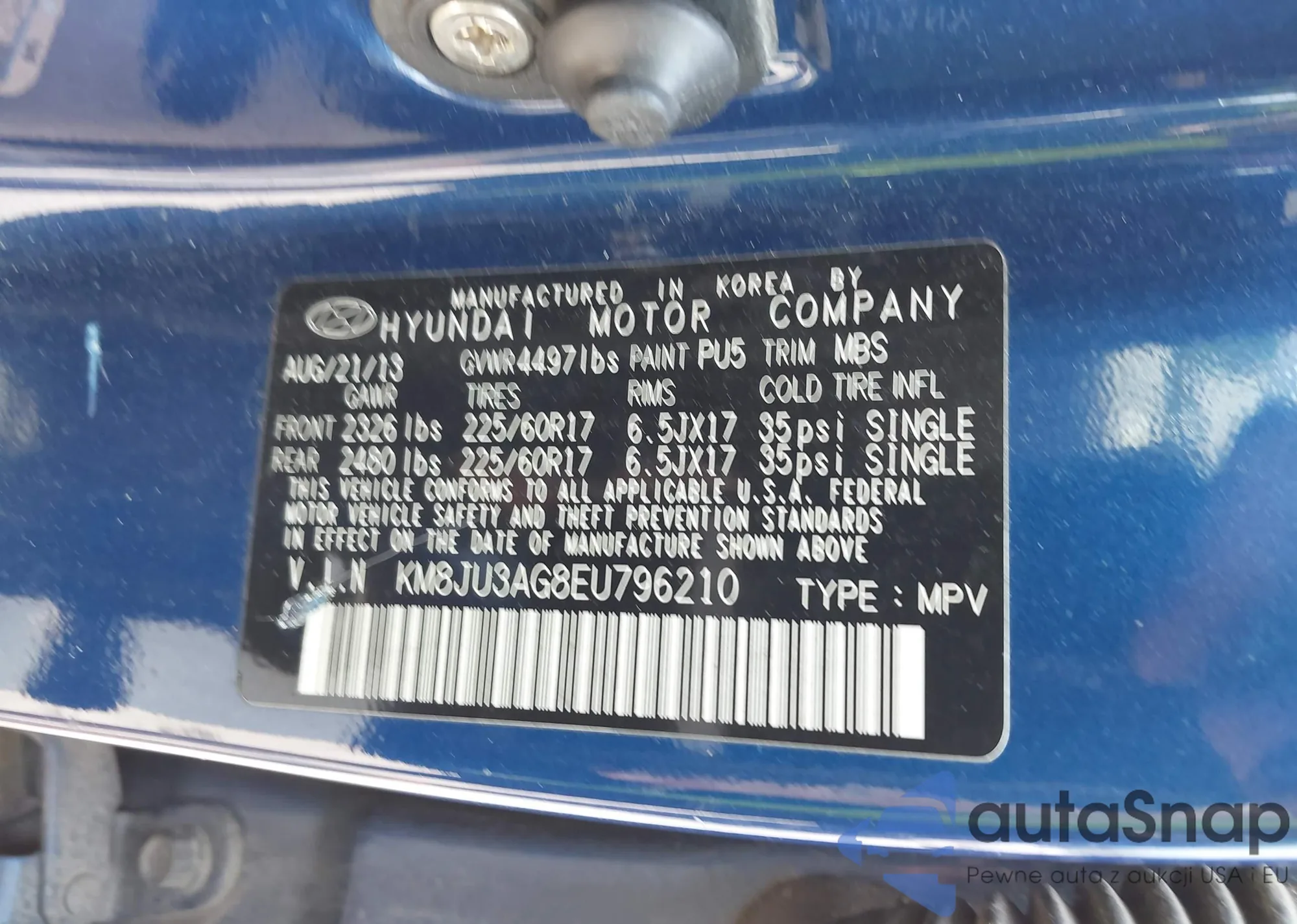 • VIN KM8JU3AG8EU796210
