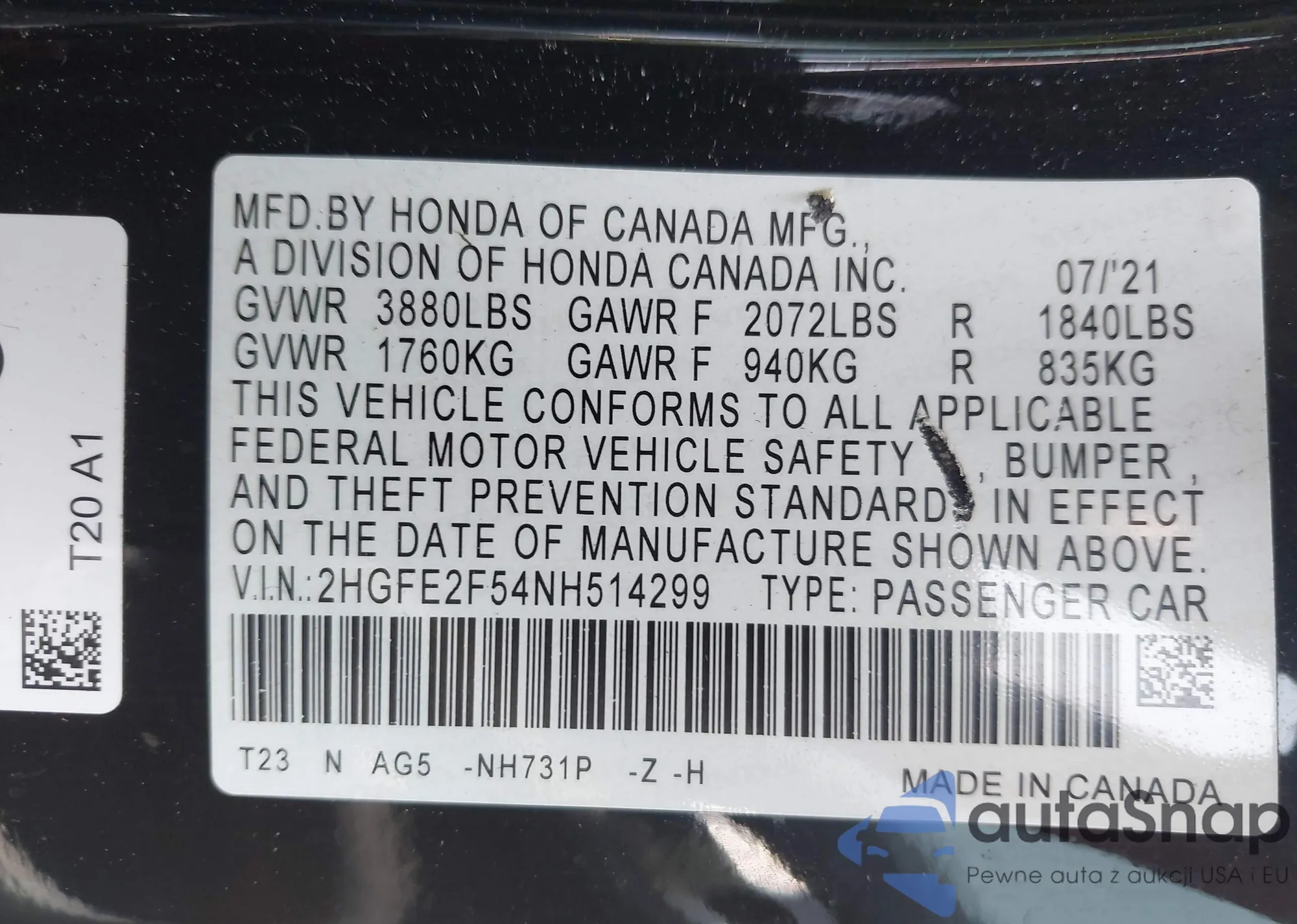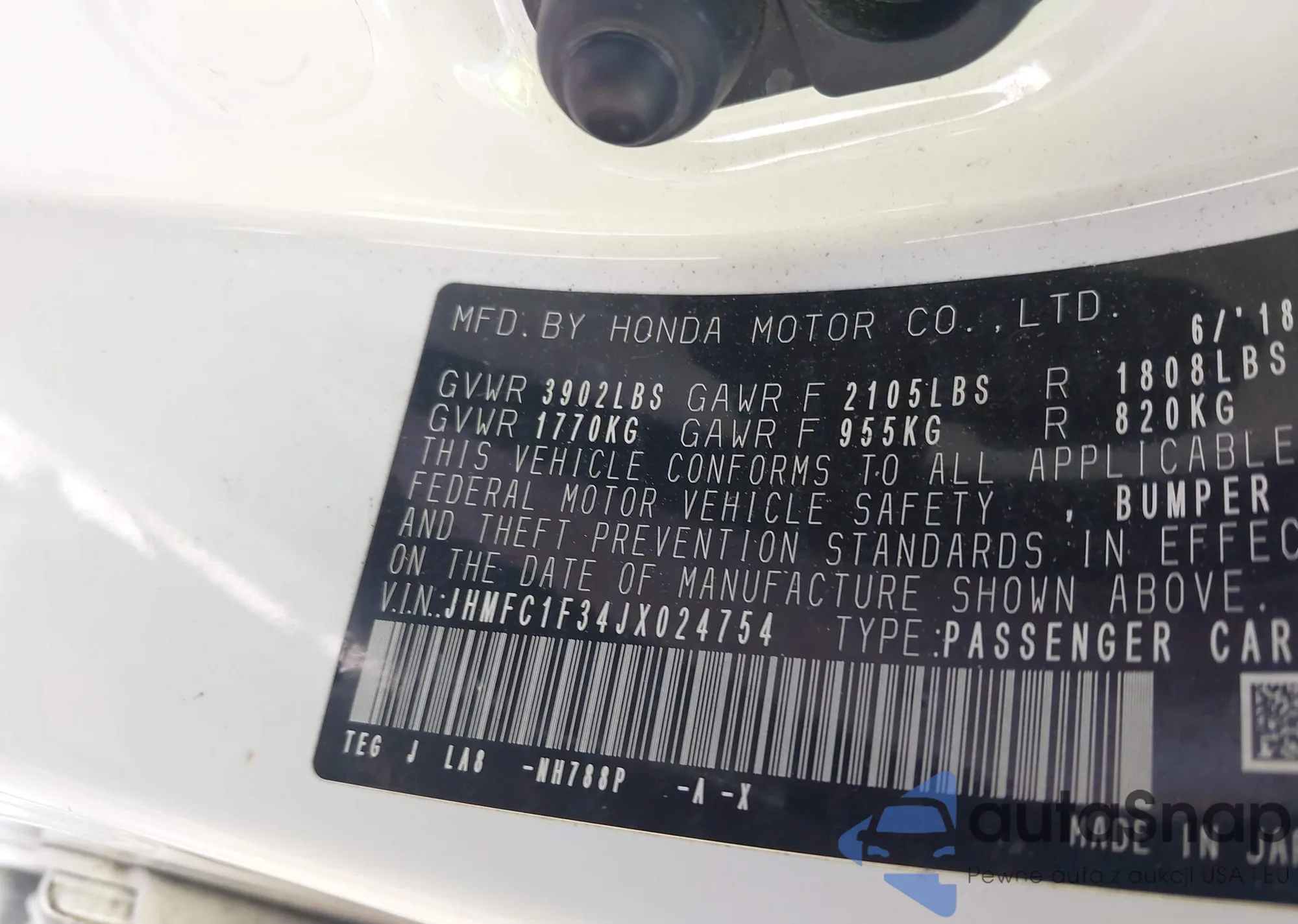 LOT: 42507900 VIN: JHMFC1F34JX024754