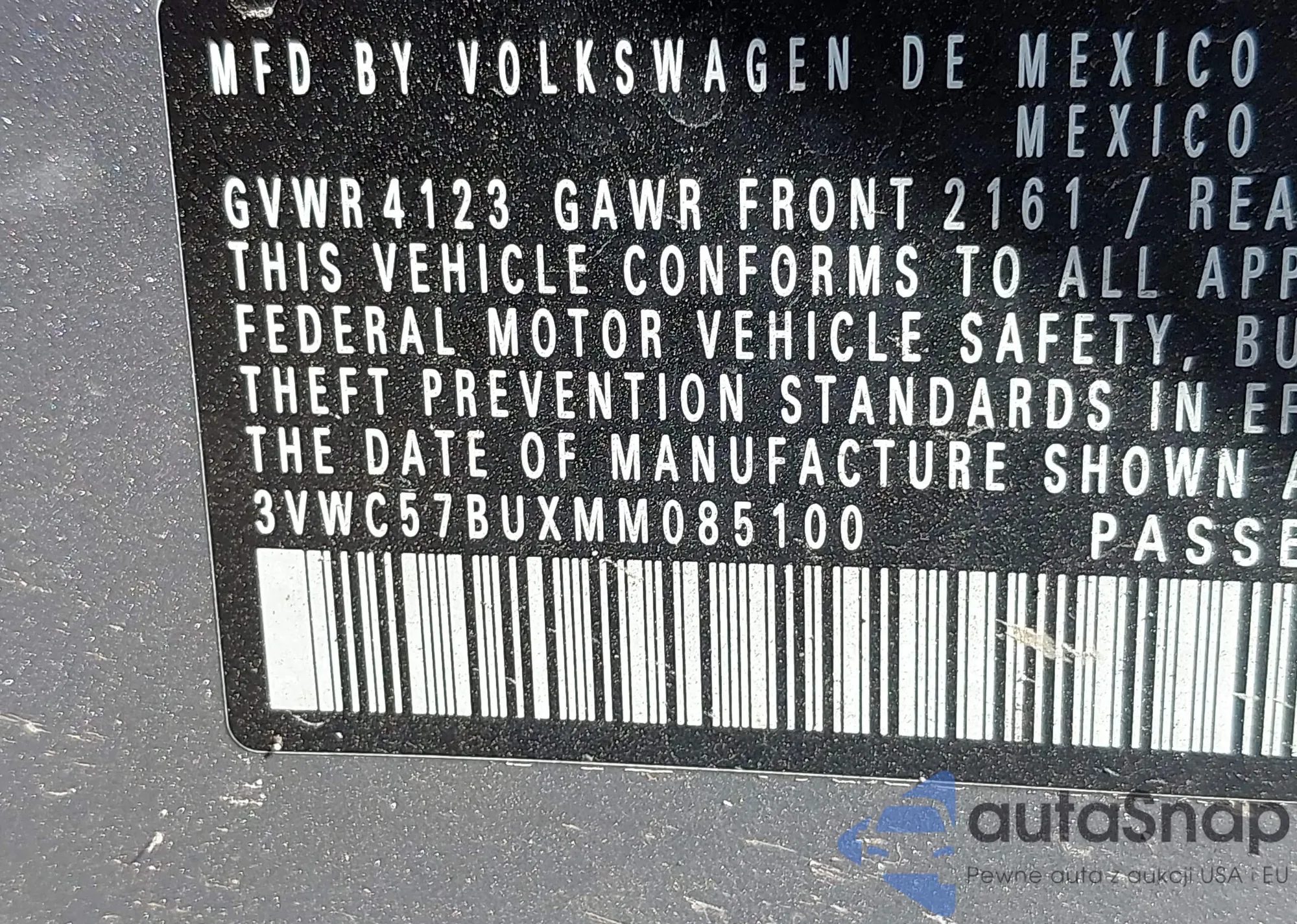 • VIN 3VWC57BUXMM085100