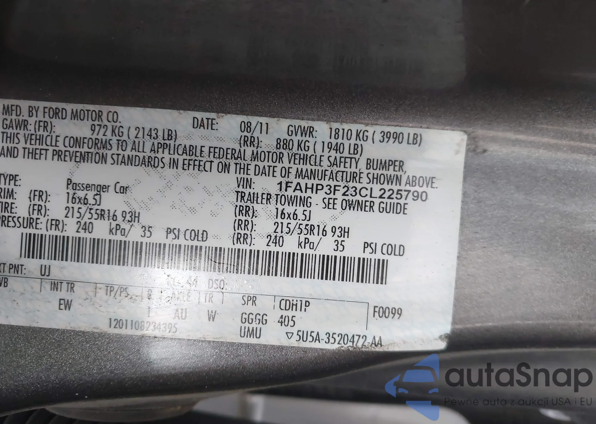 LOT: 41772641 VIN: 4T1BK3DB3BU377302