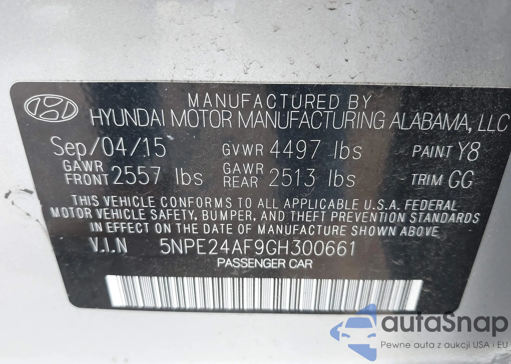 • VIN 5NPE24AF9GH300661