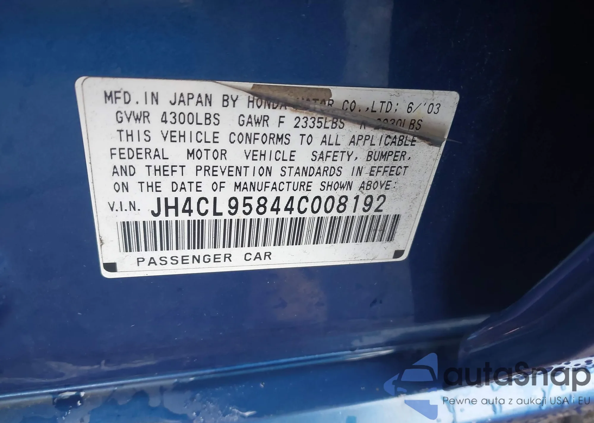 LOT: 42743942 VIN: JHMCM56793C071721