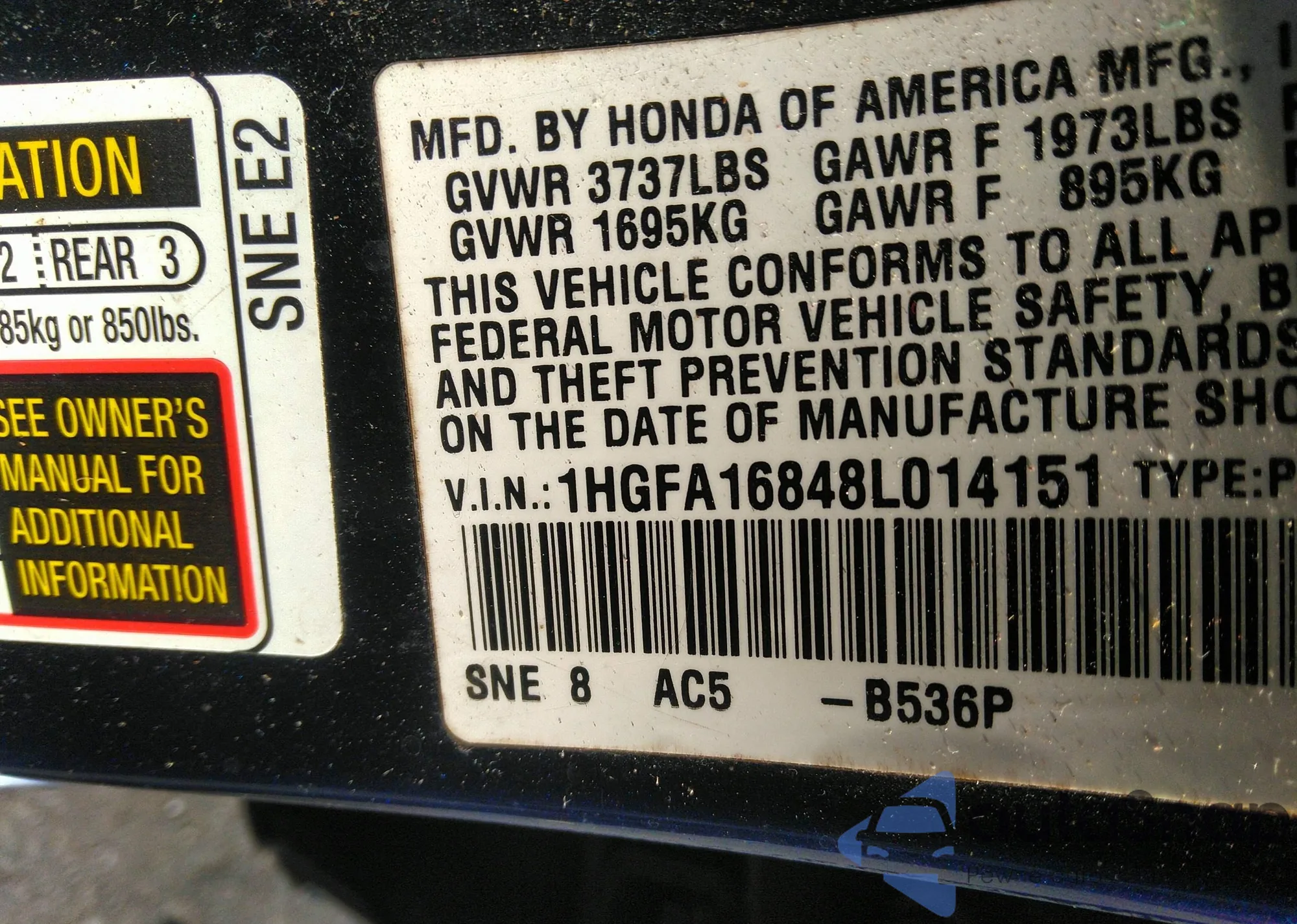 LOT: 42819848 VIN: 1HGCG16501A038097