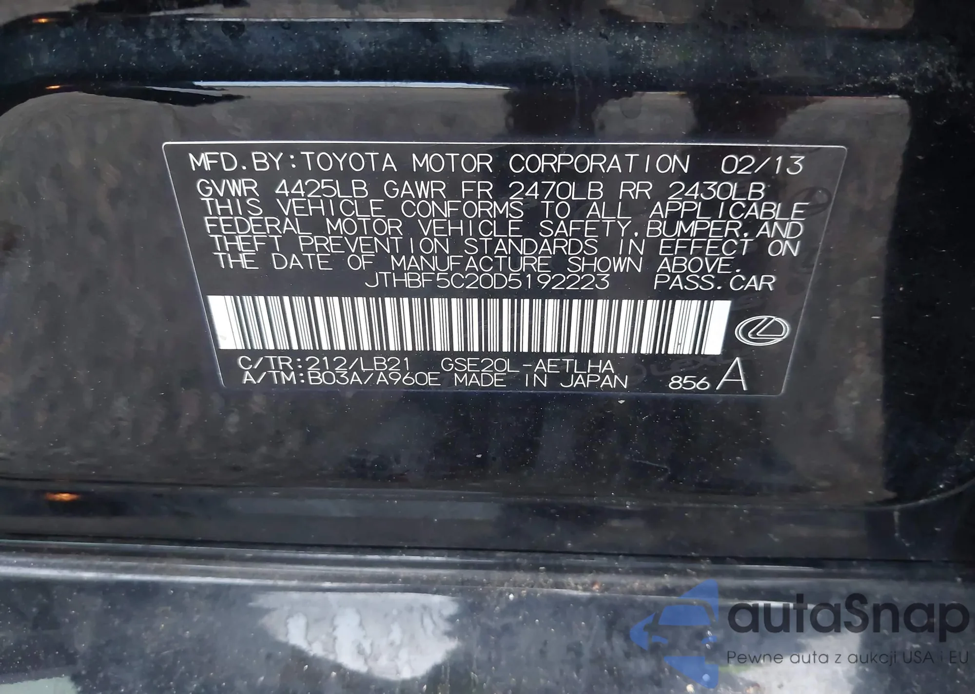 • Lot number 42812993