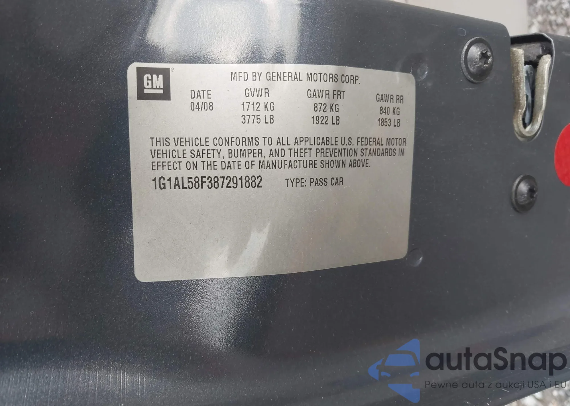 • VIN 1G1AL58F387291882