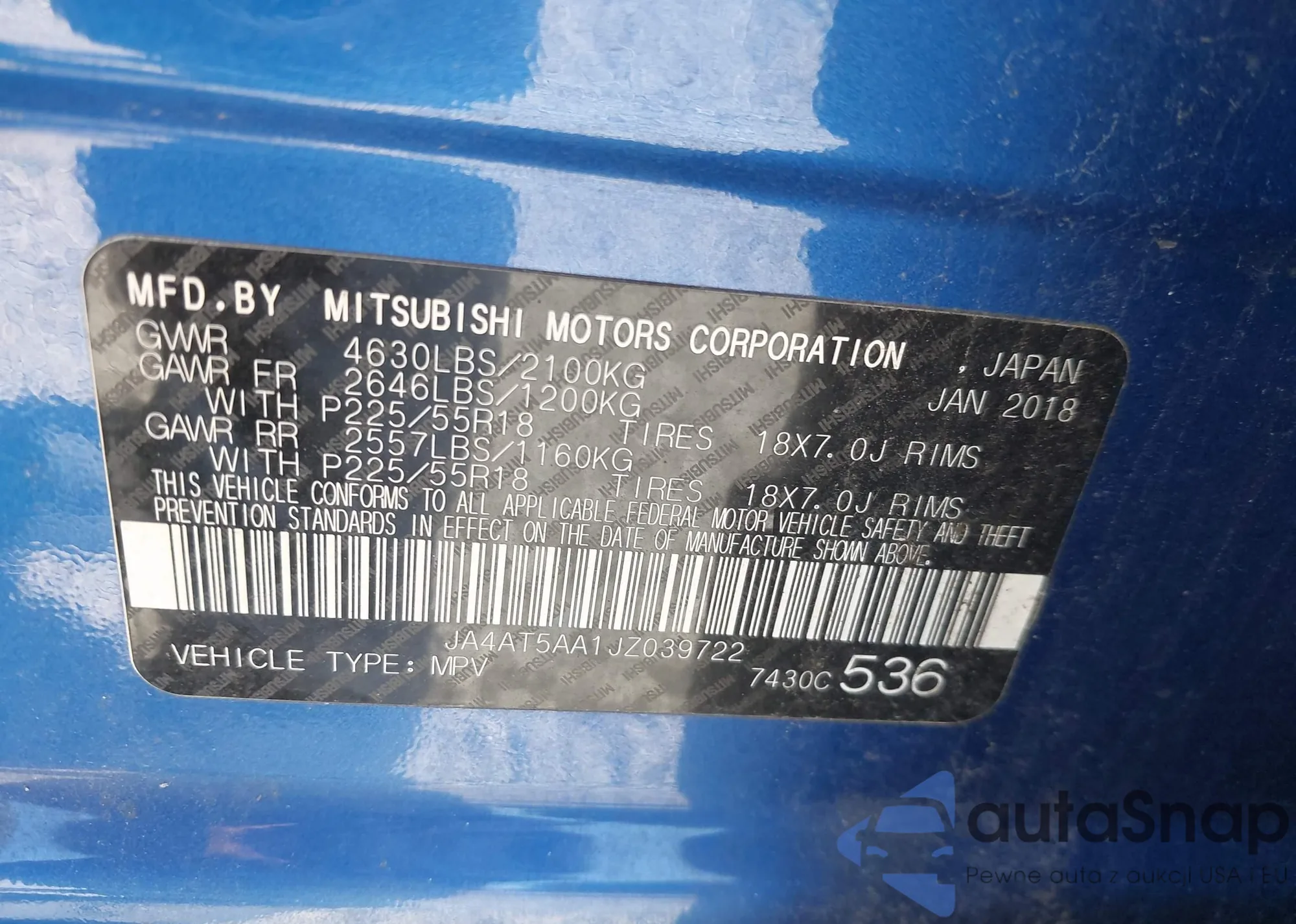• VIN JA4AT5AA1JZ039722