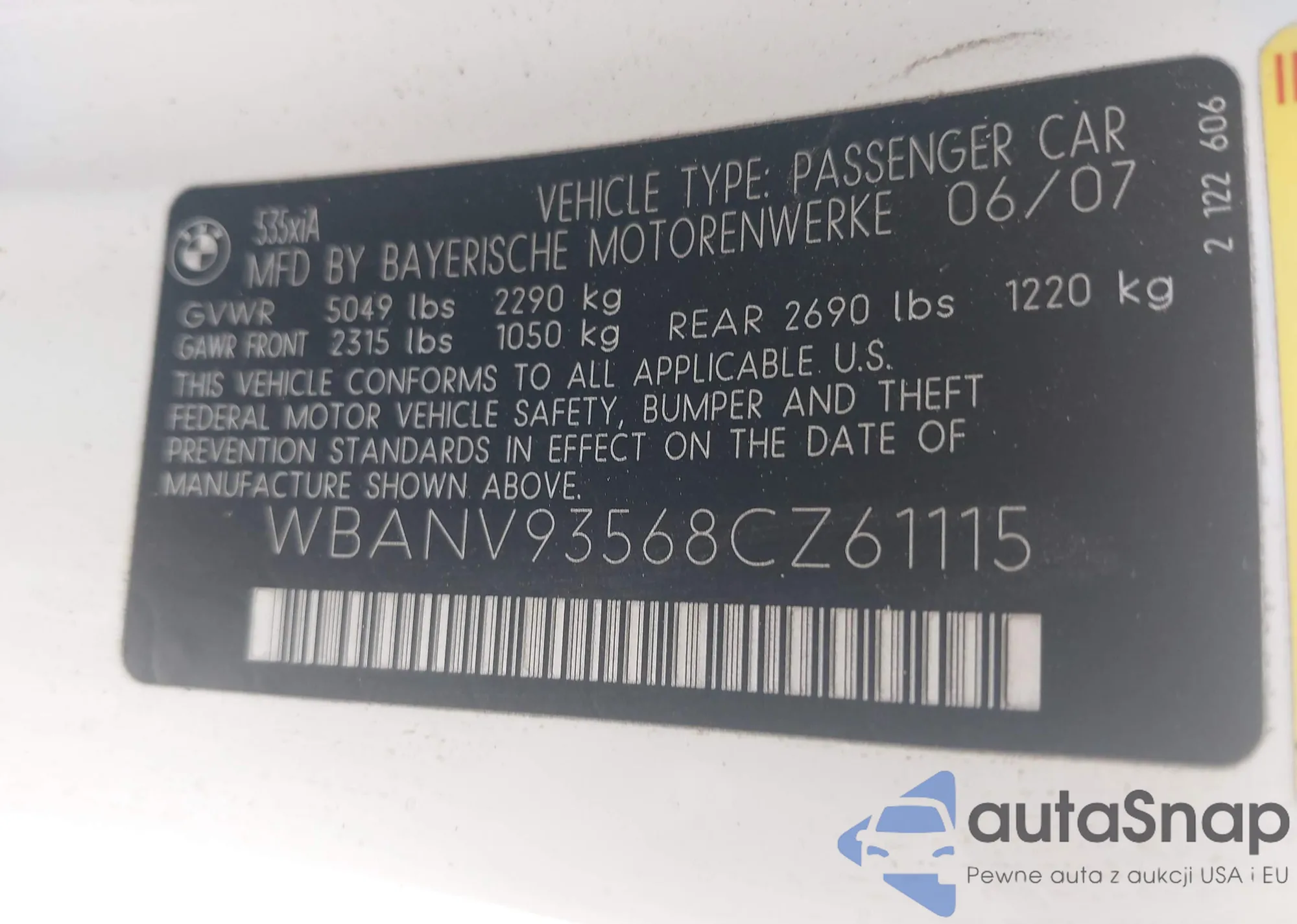 LOT: 42859628 VIN: WBANV93568CZ61115