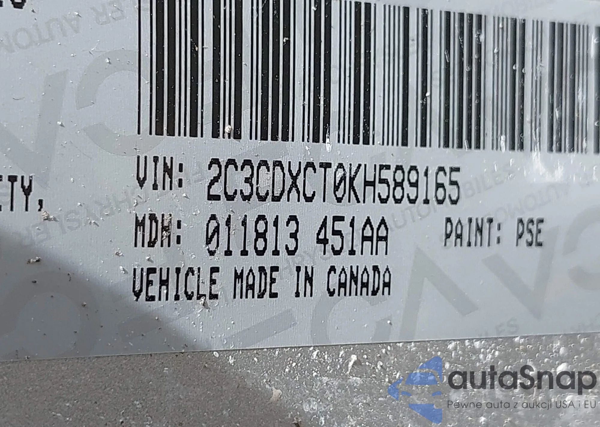 • VIN 2C3CDXCT0KH589165