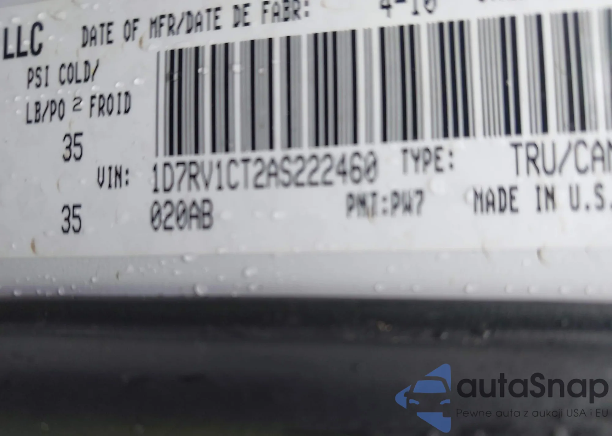 LOT: 42787573 VIN: 2B3CA4CD6AH156669