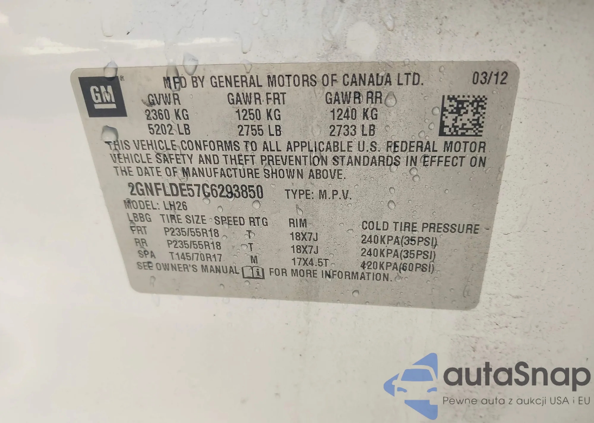 • VIN 5J6RM4H73DL012582