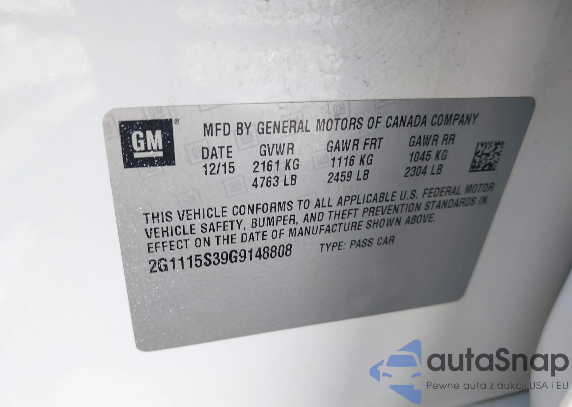 • VIN 2G1115S39G9148808