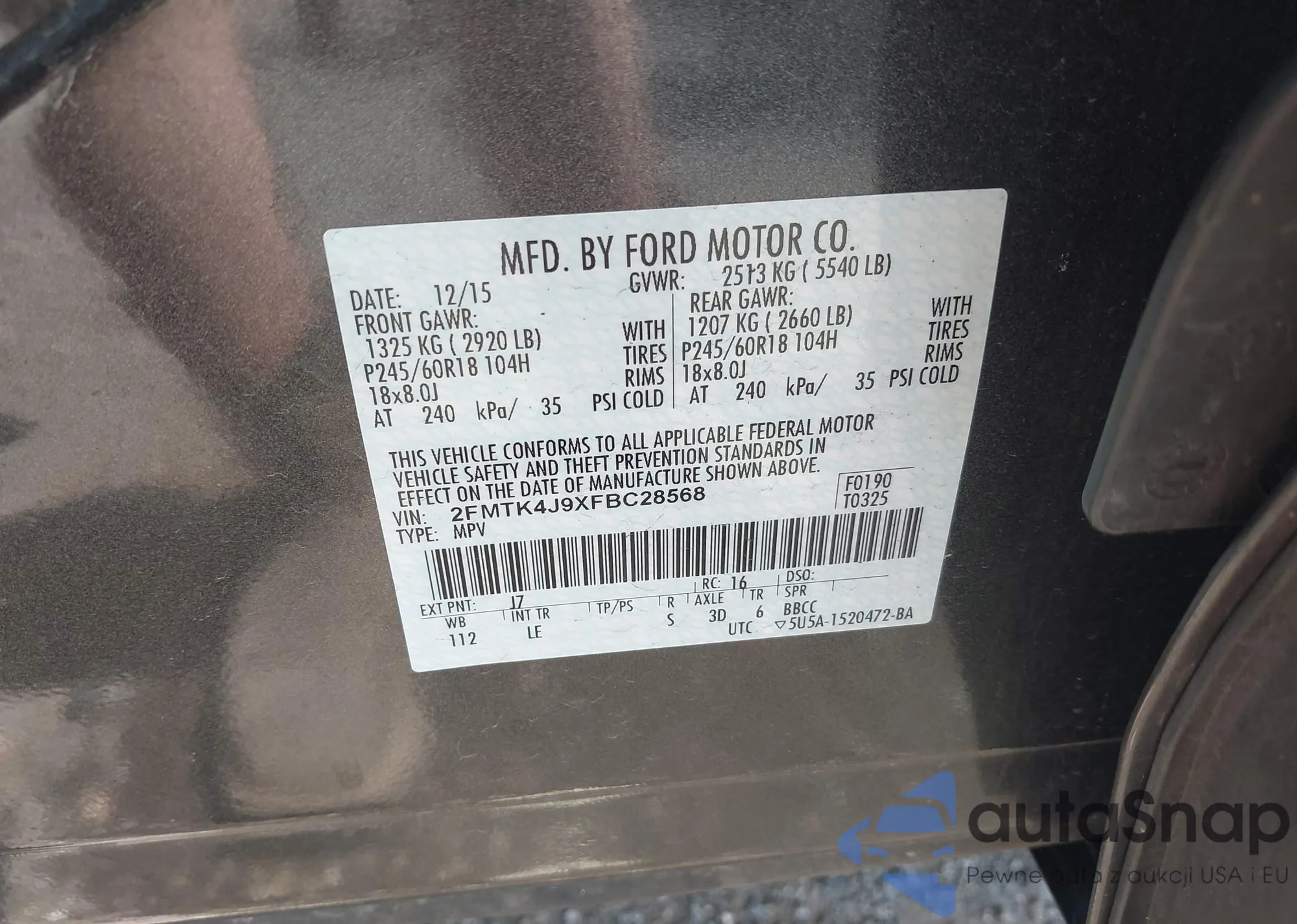 LOT: 42775039 VIN: 2FMTK4J9XFBC28568