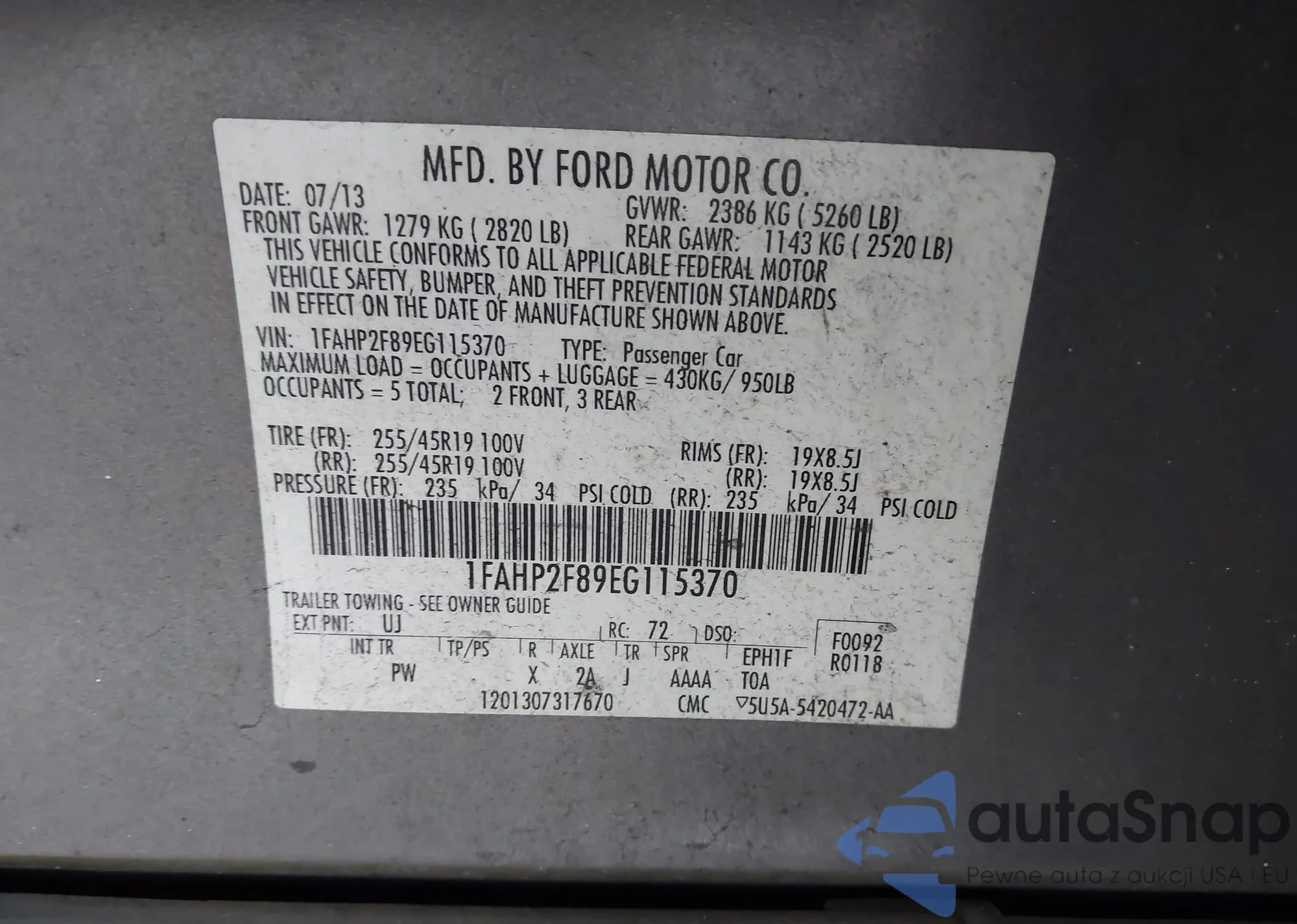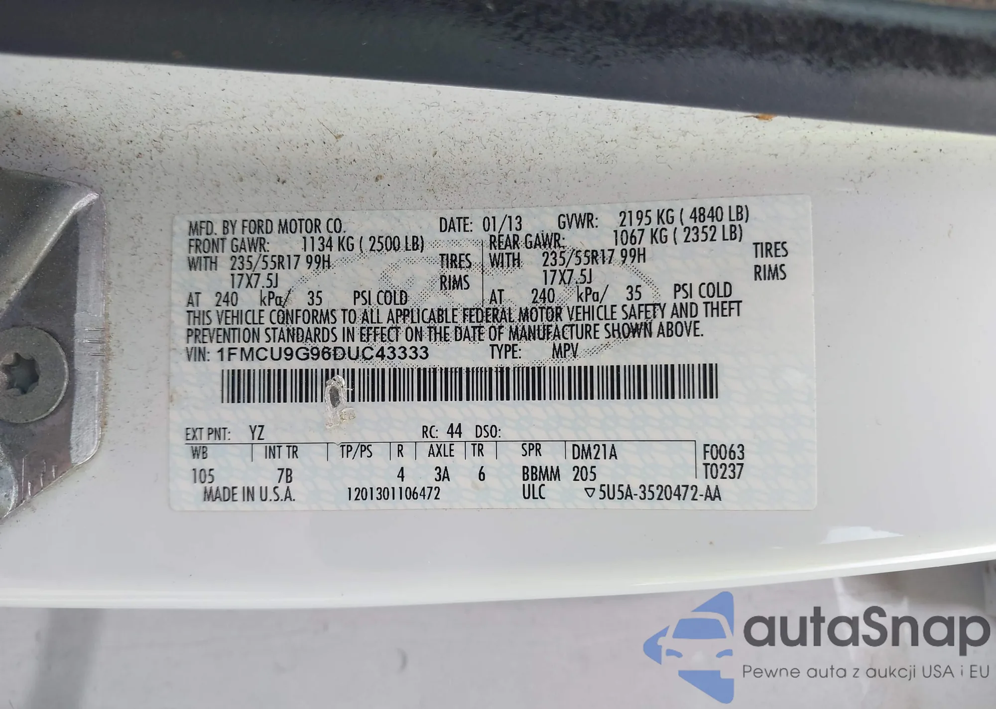 • VIN 1FMCU9G96DUC43333