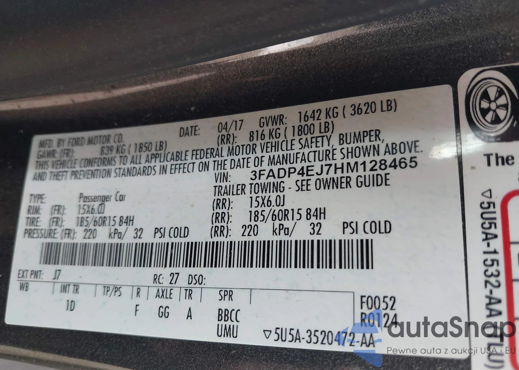 • VIN 3FADP4EJ7HM128465