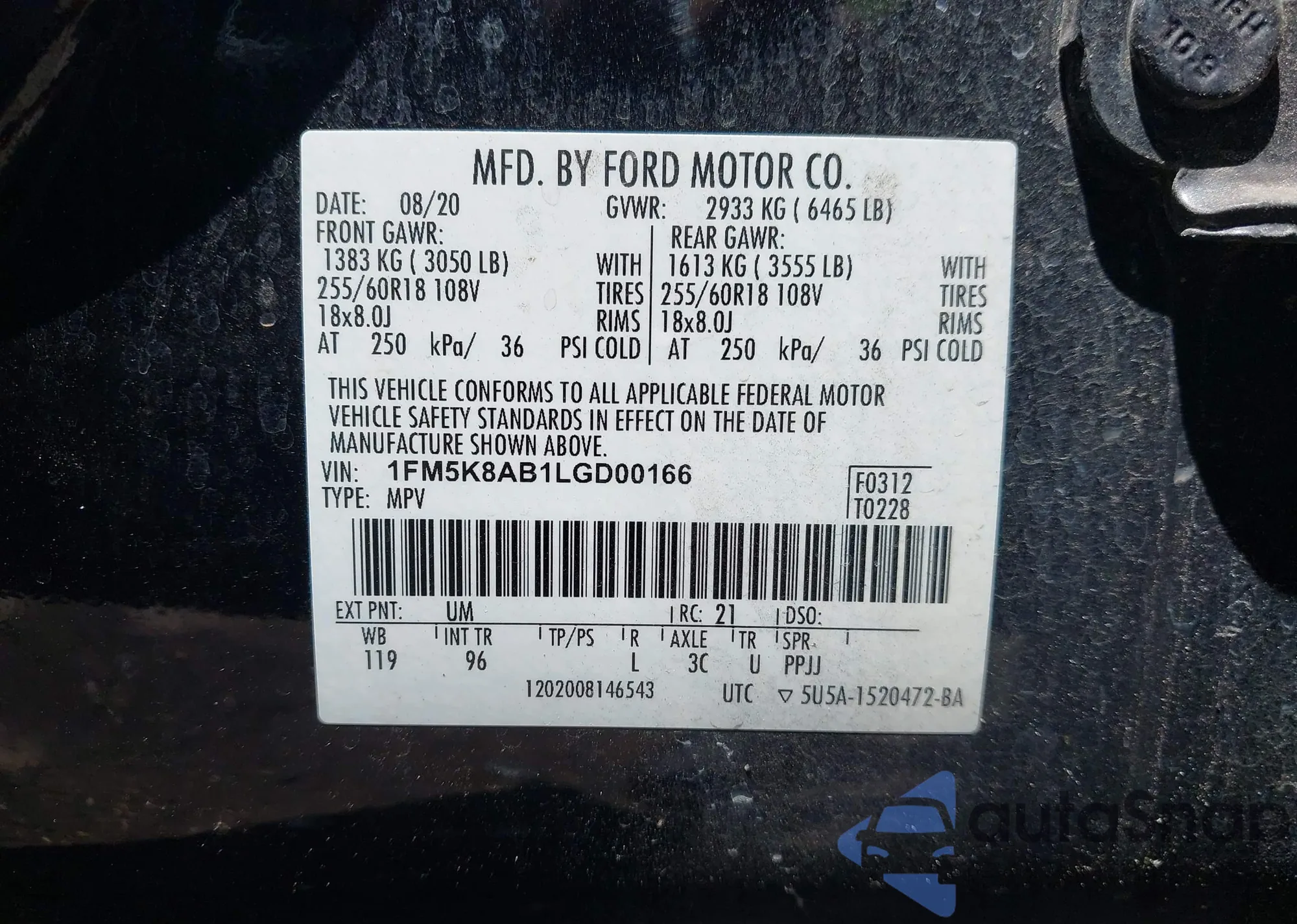 • VIN 1FM5K8AB1LGD00166