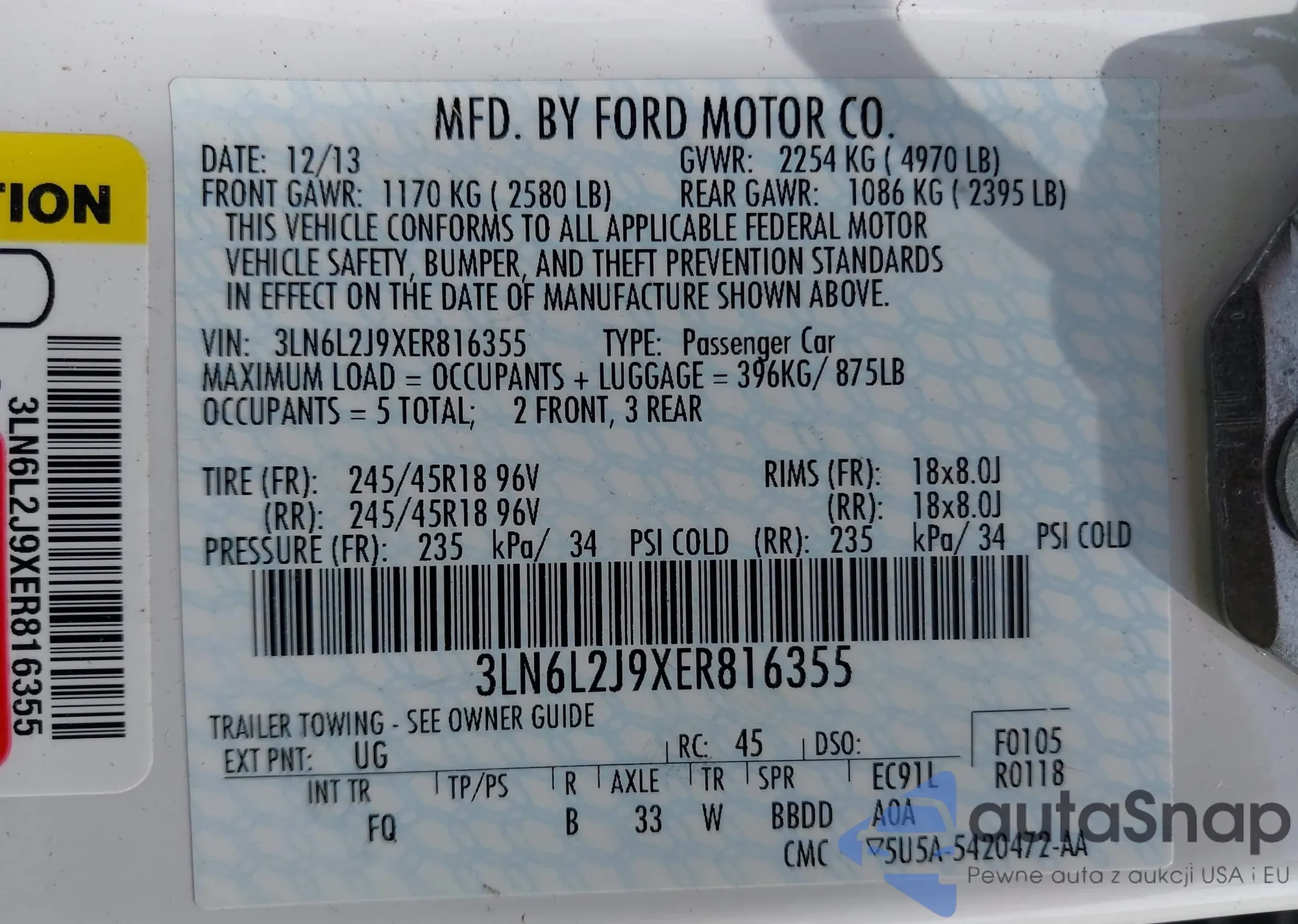 LOT: 42822771 VIN: 1FAHP3F24CL460151