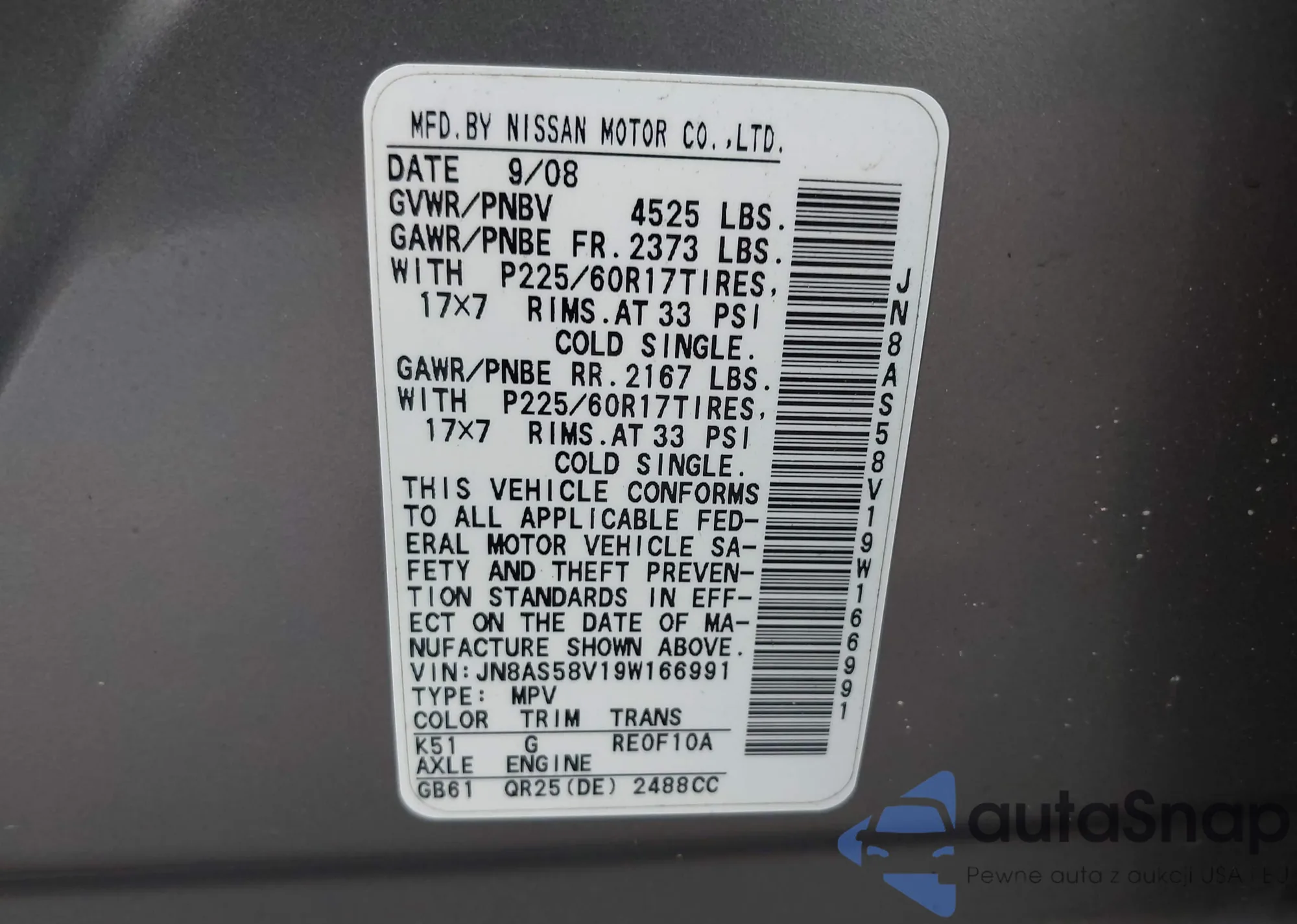 • VIN JN8AS58V19W166991