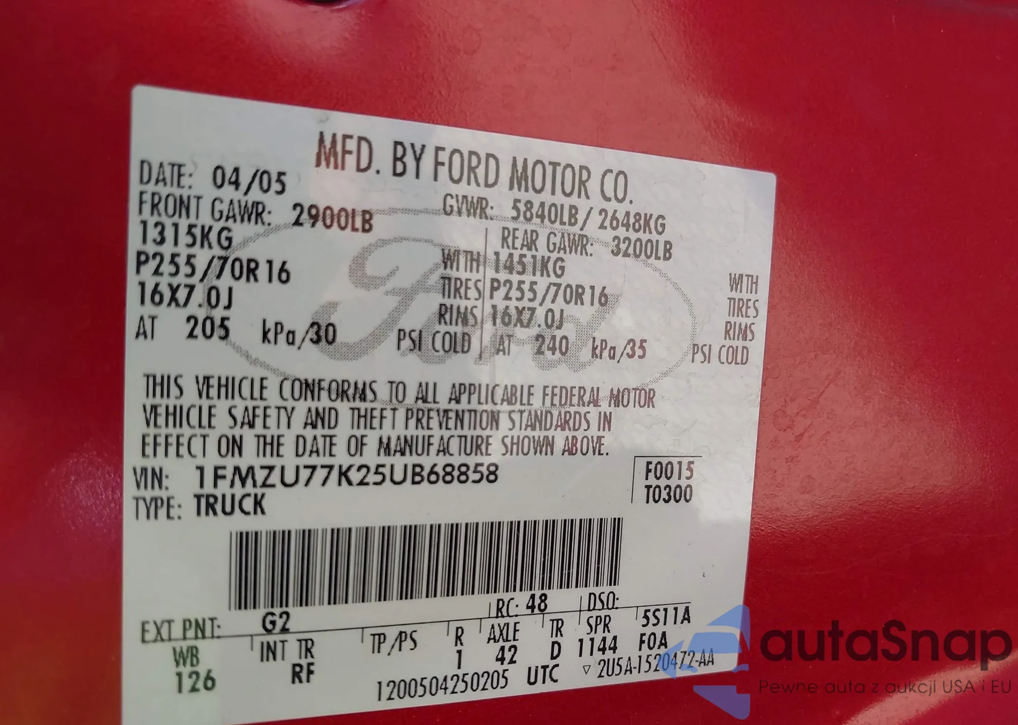 • VIN 1FMZU77K25UB68858